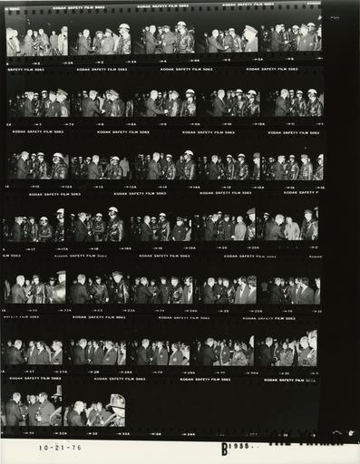 | Keywords: Ford B1935 NLGRF photo contact sheet (1976-10-21)(Gerald Ford Library).jpg  White House Photographic Office WHPO is housed at the Gerald R Ford Presidential Library a branch of the National Archives and Records Administration NARA <br/><br/> This file is a 200 dpi photo contact sheet having images from roll of film B1935 of the August 9 1974 - January 20 1977 Gerald R Ford White House Photographic Office Series A0001-A9999 and B0001-B2886 photographs <br/><br/> The date on the photo contact sheet is the date the roll of film was processed not necessarily the date the photographs were taken See table below for additional details 1976-10-21 Gerald R Ford Presidential Library Image http //www fordlibrarymuseum gov/library/whphotos/B1935_NLGRF jpg B1935_NLGRF jpg from http //www fordlibrarymuseum gov/library/whphotos/19761021whpo pdf White House Photographs October 21 1976 of the http //www fordlibrarymuseum gov/Library/whphotos/whpo asp White House Photographic Collection page White House Photographic Office WHPO - Fitz-Patrick PD-USGov Institution Institution Gerald R Ford Presidential Library Table wikitable sortable + Photo contact sheet B1935 U S President Ford Administration Gerald R Ford Library Frame s Tone Subject proper Subject generic Names Geographic Location Photographer Date - 2-33 BW Trip to New York City -Prior to Departure for John F Kennedy JFK Airport handshaking saying goodbye; all not in every frame; night shots GRF Police Officers Firemen Others New York City NY Wall Street Helipad Fitz-Patrick 1976-10-21 Gerald R Ford Presidential Library and Museum-cooperation PD-USGov Contact sheets by the Ford White House October 1976  |