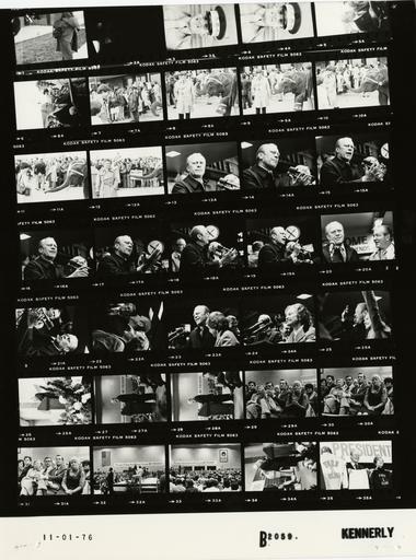 | Keywords: Ford B2059 NLGRF photo contact sheet (1976-11-01)(Gerald Ford Library).jpg White House Photographic Office WHPO is housed at the Gerald R Ford Presidential Library a branch of the National Archives and Records Administration NARA <br/><br/> This file is a 200 dpi photo contact sheet having images from roll of film B2059 of the August 9 1974 - January 20 1977 Gerald R Ford White House Photographic Office Series A0001-A9999 and B0001-B2886 photographs <br/><br/> The date on the photo contact sheet is the date the roll of film was processed not necessarily the date the photographs were taken See table below for additional details 1976-11-01 Gerald R Ford Presidential Library Image http //www fordlibrarymuseum gov/library/whphotos/B2059_NLGRF jpg B2059_NLGRF jpg from http //www fordlibrarymuseum gov/library/whphotos/19761101whpo pdf White House Photographs November 1 1976 of the http //www fordlibrarymuseum gov/Library/whphotos/whpo asp White House Photographic Collection page White House Photographic Office WHPO <br/> Creator David Hume Kennerly PD-USGov Institution Institution Gerald R Ford Presidential Library Table wikitable sortable + Photo contact sheet B2059 U S President Ford Administration Gerald R Ford Library Frame s Tone Subject proper Subject generic Names Geographic Location Photographer Date - 1A-2A BW Kennerly 1976-11-01 - 3A-4A BW Campaign Trip - Flight from Akron Ohio to Columbus Ohio seated posing; close up portrait; wearing Ford-Dole stickers around brim of hat Marine Capt Domina Air Force One Kennerly 1976-11-01 - 5A-12A BW Campaign Trip to Michigan - Rally at Wonderland Shopping Center elephant standing in front of crowd; all not in every frame Don Penny Schneider O'Donnell Crowd Elephant Livonia MI Wonderland Mall Kennerly 1976-11-01 - 13A-19A BW Campaign Trip to Michigan - Rally in Front of the Pantlind Hotel GRF at lectern talking waving smiling laughing gesturing; close ups fron right of GRF GRF Grand Rapids MI Pantlind Hotel -Outside Kennerly 1976-11-01 - 20A BW Campaign Trip to Michigan - Rally in Front of the Pantlind Hotel standing at lectern; close up GRF Unidentified Man Grand Rapids MI Pantlind Hotel -Outside Kennerly 1976-11-01 - 21A BW Campaign Trip to Michigan - Rally in Front of the Pantlind Hotel GRF at lectern speaking; Milliken in background; close ups GRF Gov Milliken Grand Rapids MI Pantlind Hotel -Outside Kennerly 1976-11-01 - 22A-25A BW Campaign Trip to Michigan - Rally in Front of the Pantlind Hotel at lectern standing embracing waving; close ups from left of BF GRF Betty Ford Grand Rapids MI Pantlind Hotel -Outside Kennerly 1976-11-01 - 26A-28A BW Campaign Trip to Michigan - Rally at Grand Rapids Junior College GRF at lectern; others seated behind; close ups from left of GRF; all not in every frame GRF Betty Ford; Philip Runkel Vernis Schad Rev Abney Rev Littlefair Lumen Winter Gerald Elliott Grand Rapids Board of Education Members Grand Rapids MI Grand Rapids Junior College - Gerald R Ford Health Physical Education Center Kennerly 1976-11-01 - 29A-31A BW Campaign Trip to Michigan - Rally at Grand Rapids Junior College - Half-Brothers of GRF and Spouses seated in crowd; close ups Tom Janet Ford; Jim Barbara Ford; Others Grand Rapids MI Grand Rapids Junior College - Gerald R Ford Health Physical Education Center Kennerly 1976-11-01 - 32A-33A BW Campaign Trip to Michigan - Rally at Grand Rapids Junior College GRF at lectern; others seated behind; crowd seated on right of frame; long shots from left of GRF; all not in every frame GRF Betty Ford; Philip Runkel Vernis Schad Rev Abney Rev Littlefair Lumen Winter Gerald Elliott Grand Rapids Board of Education Members; Crowd Grand Rapids MI Grand Rapids Junior College - Gerald R Ford Health Physical Education Center Kennerly 1976-11-01 - 34A BW Campaign Trip to Michigan - Rally at Grand Rapids Junior College standing talking at lectern; close up from right of GRF GRF Unidentified Man Grand Rapids MI Grand Rapids Junior College - Gerald R Ford Health Physical Education Center Kennerly 1976-11-01 - 35A BW Campaign Trip to Michigan - Rally at Grand Rapids Junior College at lectern; all three holding Ford 1 Club shirts GRF Betty Ford Student Grand Rapids MI Grand Rapids Junior College - Gerald R Ford Health Physical Education Center Kennerly 1976-11-01 Gerald R Ford Presidential Library and Museum-cooperation PD-USGov Contact sheets by the Ford White House November 1976 Photographs by David Hume Kennerly from 1976 |