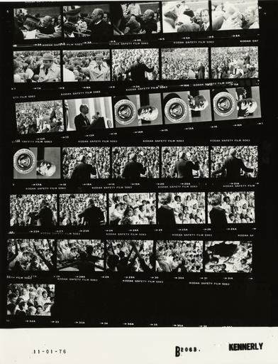 | Keywords: Ford B2063 NLGRF photo contact sheet (1976-11-01)(Gerald Ford Library).jpg White House Photographic Office WHPO is housed at the Gerald R Ford Presidential Library a branch of the National Archives and Records Administration NARA <br/><br/> This file is a 200 dpi photo contact sheet having images from roll of film B2063 of the August 9 1974 - January 20 1977 Gerald R Ford White House Photographic Office Series A0001-A9999 and B0001-B2886 photographs <br/><br/> The date on the photo contact sheet is the date the roll of film was processed not necessarily the date the photographs were taken See table below for additional details 1976-11-01 Gerald R Ford Presidential Library Image http //www fordlibrarymuseum gov/library/whphotos/B2063_NLGRF jpg B2063_NLGRF jpg from http //www fordlibrarymuseum gov/library/whphotos/19761101whpo pdf White House Photographs November 1 1976 of the http //www fordlibrarymuseum gov/Library/whphotos/whpo asp White House Photographic Collection page White House Photographic Office WHPO <br/> Creator David Hume Kennerly PD-USGov Institution Institution Gerald R Ford Presidential Library Table wikitable sortable + Photo contact sheet B2063 U S President Ford Administration Gerald R Ford Library Frame s Tone Subject proper Subject generic Names Geographic Location Photographer Date - 26-6A BW Campaign Trip to Ohio - Rally at Ohio State Capitol Building greeting handshaking; close ups; all not in every frame GRF Band Others Columbus OH Ohio State Capitol Building -Outside Kennerly 1976-11-01 - 7A-8A BW Campaign Trip to Ohio - Rally at Ohio State Capitol Building talking; Garagiola wearing overcoat and houndstooth hat; all not in both frames Joe Garagiola Crowd Columbus OH Ohio State Capitol Building -Outside Kennerly 1976-11-01 - 9A-13A BW Campaign Trip to Ohio - Rally at Ohio State Capitol Building GRF at lectern speaking; back to camera in most frames; various angles and distances; all not in every frame GRF Platform Guests Crowd Others Columbus OH Ohio State Capitol Building -Outside Kennerly 1976-11-01 - 14A-17A BW Campaign Trip to Ohio - Rally at Ohio State Capitol Building at lectern speaking gesturing; close ups; Presidential Seal in foreground; taken from lower vantage point GRF Columbus OH Ohio State Capitol Building -Outside Kennerly 1976-11-01 - 18A-23A BW Campaign Trip to Ohio - Rally at Ohio State Capitol Building at lectern speaking gesturing back to camera; crowd seated in background; close ups GRF Crowd Columbus OH Ohio State Capitol Building -Outside Kennerly 1976-11-01 - 24A BW Campaign Trip to Ohio - Rally at Fort Hayes Career Center seated listening Members of Performing Arts Department Others Columbus OH Fort Hayes Career Center - Mall Area Kennerly 1976-11-01 - 25A-26A BW Campaign Trip to Ohio - Rally at Fort Hayes Career Center BF speaking back to camera; GRF and others seated listening GRF Betty Ford; Members of Performing Arts Department Others Columbus OH Fort Hayes Career Center - Mall Area Kennerly 1976-11-01 - 27A-29A BW Campaign Trip to Ohio - Rally at Fort Hayes Career Center GRF and others seated listening; performers in foreground backs to camera out of focus GRF Members of Performing Arts Department Others Columbus OH Fort Hayes Career Center - Mall Area Kennerly 1976-11-01 - 301-32A BW Campaign Trip to Ohio - Rally at Fort Hayes Career Center GRF seated standing in crowd speaking; crowd seated; all not in every frame GRF Others Columbus OH Fort Hayes Career Center - Mall Area Kennerly 1976-11-01 Gerald R Ford Presidential Library and Museum-cooperation PD-USGov Contact sheets by the Ford White House November 1976 Photographs by David Hume Kennerly from 1976 |