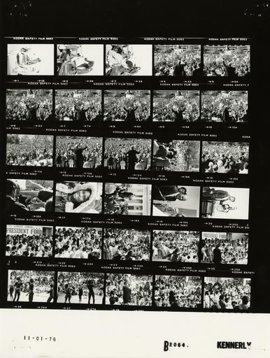 Keywords: Ford B2064 NLGRF photo contact sheet (1976-11-01)(Gerald Ford Library).jpg White House Photographic Office WHPO is housed at the Gerald R Ford Presidential Library a branch of the National Archives and Records Administration NARA <br/><br/> This file is a 200 dpi photo contact sheet having images from roll of film B2064 of the August 9 1974 - January 20 1977 Gerald R Ford White House Photographic Office Series A0001-A9999 and B0001-B2886 photographs <br/><br/> The date on the photo contact sheet is the date the roll of film was processed not necessarily the date the photographs were taken See table below for additional details 1976-11-01 Gerald R Ford Presidential Library Image http //www fordlibrarymuseum gov/library/whphotos/B2064_NLGRF jpg B2064_NLGRF jpg from http //www fordlibrarymuseum gov/library/whphotos/19761101whpo pdf White House Photographs November 1 1976 of the http //www fordlibrarymuseum gov/Library/whphotos/whpo asp White House Photographic Collection page White House Photographic Office WHPO <br/> Creator David Hume Kennerly PD-USGov Institution Institution Gerald R Ford Presidential Library Table wikitable sortable + Photo contact sheet B2064 U S President Ford Administration Gerald R Ford Library Frame s Tone Subject proper Subject generic Names Geographic Location Photographer Date - 1-3 BW Campaign Trip to Ohio - Arrival in Columbus GRF standing on top of limousine speaking in 1st frame; Secret Service helping him down in others GRF Secret Service Columbus OH Port Columbus Airport Kennerly 1976-11-01 - 4-15 BW Campaign Trip to Ohio - Rally at Ohio State Capitol Building GRF at lectern speaking; back to camera; various angles and distances; all not in every frame GRF Platform Guests Crowd Others Columbus OH Ohio State Capitol Building -Outside Kennerly 1976-11-01 - 16 BW Campaign Trip to Ohio - Rally at Ohio State Capitol Building greeting handshaking; close up GRF Crowd Columbus OH Ohio State Capitol Building -Outside Kennerly 1976-11-01 - 17 BW Campaign Trip to Ohio - Rally at Ohio State Capitol Building smiling wearing hooded coat; close up Young Girl Columbus OH Ohio State Capitol Building -Outside Kennerly 1976-11-01 - 18 BW Campaign Trip to Ohio - Rally at Ohio State Capitol Building GRF standing on top of limousine speaking; State Capitol Building in background GRF Secret Service Crowd Columbus OH Ohio State Capitol Building -Outside Kennerly 1976-11-01 - 19 BW Campaign Trip to Ohio - Tour of Fort Hayes Career Center Keiser pointing at skeleton laughing; close up Keiser Skeleton Columbus OH Education Building -Fort Hayes Career Center Kennerly 1976-11-01 - 20 BW Campaign Trip to Ohio - Tour of Fort Hayes Career Center standing by 3-D human anatomy model Don Penny Schneider Columbus OH Education Building -Fort Hayes Career Center Kennerly 1976-11-01 - 21-25 BW Campaign Trip to Ohio - Rally at Fort Hayes Career Center GRF seated in crowd watching performance; all not in every frame GRF Others Columbus OH Fort Hayes Career Center - Mall Area Kennerly 1976-11-01 - 26-27 BW Campaign Trip to Ohio - Rally at Fort Hayes Career Center GRF and others seated listening; performers in foreground backs to camera GRF Members of Performing Arts Department Others Columbus OH Fort Hayes Career Center - Mall Area Kennerly 1976-11-01 - 28-30 BW Campaign Trip to Ohio - Rally at Fort Hayes Career Center GRF seated standing in crowd speaking; crowd seated; all not in every frame GRF Others Columbus OH Fort Hayes Career Center - Mall Area Kennerly 1976-11-01 Gerald R Ford Presidential Library and Museum-cooperation PD-USGov Contact sheets by the Ford White House November 1976 Photographs by David Hume Kennerly from 1976 |