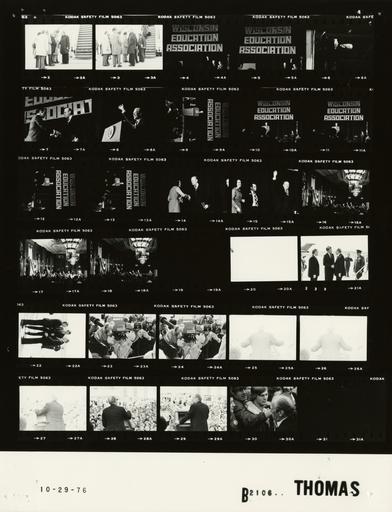 | Keywords: Ford B2106 NLGRF photo contact sheet (1976-10-29)(Gerald Ford Library).jpg White House Photographic Office WHPO is housed at the Gerald R Ford Presidential Library a branch of the National Archives and Records Administration NARA <br/><br/> This file is a 200 dpi photo contact sheet having images from roll of film B2106 of the August 9 1974 - January 20 1977 Gerald R Ford White House Photographic Office Series A0001-A9999 and B0001-B2886 photographs <br/><br/> The date on the photo contact sheet is the date the roll of film was processed not necessarily the date the photographs were taken See table below for additional details 1976-10-29 Gerald R Ford Presidential Library Image http //www fordlibrarymuseum gov/library/whphotos/B2106_NLGRF jpg B2106_NLGRF jpg from http //www fordlibrarymuseum gov/library/whphotos/19761029whpo pdf White House Photographs October 29 1976 of the http //www fordlibrarymuseum gov/Library/whphotos/whpo asp White House Photographic Collection page White House Photographic Office WHPO - Thomas PD-USGov Institution Institution Gerald R Ford Presidential Library Table wikitable sortable + Photo contact sheet B2106 U S President Ford Administration Gerald R Ford Library Frame s Tone Subject proper Subject generic Names Geographic Location Photographer Date - 2-3 BW Campaign Trip to Wisconsin - Arrival in Milwaukee greeting handshaking at base of steps from Air Force One; all may not be in frames GRF W Knowles Rep Kasten W Messinger O Fish S York S Otto; Others Milwaukee WI Billy Mitchell Field Thomas 1976-10-29 - 4-13 BW Campaign Trip to Wisconsin - Wisconsin Education Association Convention GRF at lectern speaking; various angles and distances; all taken from back of room; large Wisconsin Education Association sign in background in most frames GRF Crowd Milwaukee WI Milwaukee Exposition Convention Center and Arena Thomas 1976-10-29 - 14-14 BW Campaign Trip to Wisconsin - Wisconsin Education Association Convention greeting handshaking; all not on both frames GRF Others Milwaukee WI Milwaukee Exposition Convention Center and Arena Thomas 1976-10-29 - 16-18 BW Campaign Trip to Wisconsin - Address to Leaders of Milwaukee Area Ethnic Organizations GRF at lectern speaking; extreme long shots; dark; GRF in background; chandelliers hanging from ceiling GRF Others Milwaukee WI Marc Plaza Hotel - Monarch Room Thomas 1976-10-29 - 19-20 BW Thomas 1976-10-29 - 21-22 BW Campaign Trip to Missouri; Arrival in St Louis; Attorney General of Missouri MO - St Louis Missouri greeting handshaking on tarmac GRF John Danforth Others St Louis MO Lambert Field Thomas 1976-10-29 - 23-24 BW Campaign Trip to Missouri; Arrival in St Louis - St Louis Missouri close-ups; TV crew filming GRF's remarks Media St Louis MO Lambert Field Thomas 1976-10-29 - 25-29 BW Campaign Trip to Missouri; Rally in Front of the Old Court House - St Louis Missouri speaking at lectern; back to camera GRF St Louis MO Gateway Mall - Luther Ely Smith Memorial Park Thomas 1976-10-29 - 30 BW Campaign Trip to Missouri; Rally in Front of the Old Court House - St Louis Missouri greeting handshaking GRF Men in Crowd St Louis MO Gateway Mall - Luther Ely Smith Memorial Park Thomas 1976-10-29 Gerald R Ford Presidential Library and Museum-cooperation PD-USGov Contact sheets by the Ford White House October 1976 William Lendrum Mitchell |