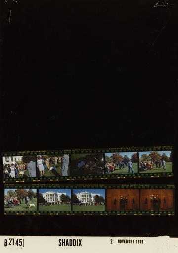 | Keywords: Ford B2145 NLGRF photo contact sheet (1976-11-02)(Gerald Ford Library).jpg White House Photographic Office WHPO is housed at the Gerald R Ford Presidential Library a branch of the National Archives and Records Administration NARA <br/><br/> This file is a 200 dpi photo contact sheet having images from roll of film B2145 of the August 9 1974 - January 20 1977 Gerald R Ford White House Photographic Office Series A0001-A9999 and B0001-B2886 photographs <br/><br/> The date on the photo contact sheet is the date the roll of film was processed not necessarily the date the photographs were taken See table below for additional details 1976-11-02 Gerald R Ford Presidential Library Image http //www fordlibrarymuseum gov/library/whphotos/B2145_NLGRF jpg B2145_NLGRF jpg from http //www fordlibrarymuseum gov/library/whphotos/19761102whpo pdf White House Photographs November 2 1976 of the http //www fordlibrarymuseum gov/Library/whphotos/whpo asp White House Photographic Collection page White House Photographic Office WHPO - Shaddix PD-USGov Institution Institution Gerald R Ford Presidential Library Table wikitable sortable + Photo contact sheet B2145 U S President Ford Administration Gerald R Ford Library Frame s Tone Subject proper Subject generic Names Geographic Location Photographer Date - 3A-5A Color Awaiting Arrival of Marine One with President Mrs Ford from Andrews Air Force Base - Pet Golden Retriever standing waiting; dog on leash wearing white President Ford T-Shirt White House staff Liberty or Misty South Lawn Shaddix 1976-11-02 - 6A Color Arrival of President Mrs Ford from Andrews Air Force Base - Pet Golden Retriever GRF and HAK embracing; BF in background; staff on left of frame GRF Betty Ford Kissinger White House staff South Lawn Shaddix 1976-11-02 - 7A-8A Color Arrival of Marine President Mrs Ford from Andrews Air Force Base - Pet Golden Retriever standing talking; GRF embracing woman in 2nd frame; all not in both frames; dog running loose wearing white President Ford T-Shirt GRF Betty Ford Kissinger White House staff Liberty or Misty South Lawn Shaddix 1976-11-02 - 9A-10A Color Arrival of President Mrs Ford from Andrews Air Force Base - Pet Golden Retriever long shots; White House in background GRF Betty Ford Kissinger White House staff Liberty or Misty South Lawn Shaddix 1976-11-02 - 11A-12A Color Arrival from Andrews Air Force Base walking toward Shaddix not shown talking; hands clasped at waist in 2nd frame GRF Ground Floor -Corridor Shaddix 1976-11-02 Gerald R Ford Presidential Library and Museum-cooperation PD-USGov Contact sheets by the Ford White House November 1976 |