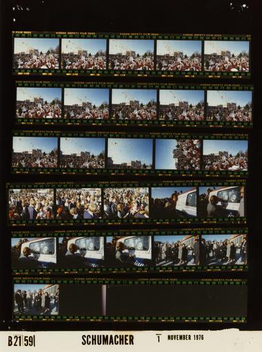 Keywords: Ford B2159 NLGRF photo contact sheet (1976-11-01)(Gerald Ford Library).jpg White House Photographic Office WHPO is housed at the Gerald R Ford Presidential Library a branch of the National Archives and Records Administration NARA <br/><br/> This file is a 200 dpi photo contact sheet having images from roll of film B2159 of the August 9 1974 - January 20 1977 Gerald R Ford White House Photographic Office Series A0001-A9999 and B0001-B2886 photographs <br/><br/> The date on the photo contact sheet is the date the roll of film was processed not necessarily the date the photographs were taken See table below for additional details 1976-11-01 Gerald R Ford Presidential Library Image http //www fordlibrarymuseum gov/library/whphotos/B2159_NLGRF jpg B2159_NLGRF jpg from http //www fordlibrarymuseum gov/library/whphotos/19761101whpo pdf White House Photographs November 1 1976 of the http //www fordlibrarymuseum gov/Library/whphotos/whpo asp White House Photographic Collection page White House Photographic Office WHPO - Schumacher PD-USGov Institution Institution Gerald R Ford Presidential Library Table wikitable sortable + Photo contact sheet B2159 U S President Ford Administration Gerald R Ford Library Frame s Tone Subject proper Subject generic Names Geographic Location Photographer Date - 1A-15A Color Betty Ford Campaign Trip to Pennsylvania - PFC Rally Prior to Departure for Michigan BF Connors and others on platform; band in foreground large S on back red uniforms; terminal in background; balloons being released upward; long shots Betty Ford Chuck Connors Crowd Unidentified Marching Band Harrisburg PA Harrisburg Capitol City Airport Schumacher 1976-11-01 - 16A-18A Color Betty Ford Campaign Trip to Pennsylvania - PFC Rally Prior to Departure for Michigan greeting handshaking talking mingling; all not in every frame Betty Ford Crowd; Secret Service Harrisburg PA Harrisburg Capitol City Airport Schumacher 1976-11-01 - 19A-23A Color Betty Ford Campaign Trip to Pennsylvania - PFC Rally Prior to Departure for Michigan standing next to van covered with campaign signs and signatures; BF signing van in last four frames; back to camera Betty Ford Harrisburg PA Harrisburg Capitol City Airport Schumacher 1976-11-01 - 24A-26A Color Betty Ford Campaign Trip to Pennsylvania - Following PFC Rally Prior to Departure for Michigan standing posing in front of terminal Betty Ford' Others Harrisburg PA Harrisburg Capitol City Airport Schumacher 1976-11-01 Gerald R Ford Presidential Library and Museum-cooperation PD-USGov Contact sheets by the Ford White House November 1976 |