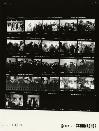 | Keywords: Ford B2367 NLGRF photo contact sheet (1976-11-30)(Gerald Ford Library).jpg White House Photographic Office WHPO is housed at the Gerald R Ford Presidential Library a branch of the National Archives and Records Administration NARA <br/><br/> This file is a 200 dpi photo contact sheet having images from roll of film B2367 of the August 9 1974 - January 20 1977 Gerald R Ford White House Photographic Office Series A0001-A9999 and B0001-B2886 photographs <br/><br/> The date on the photo contact sheet is the date the roll of film was processed not necessarily the date the photographs were taken See table below for additional details 1976-11-30 Gerald R Ford Presidential Library Image http //www fordlibrarymuseum gov/library/whphotos/B2367_NLGRF jpg B2367_NLGRF jpg from http //www fordlibrarymuseum gov/library/whphotos/19761130whpo pdf White House Photographs November 30 1976 of the http //www fordlibrarymuseum gov/Library/whphotos/whpo asp White House Photographic Collection page White House Photographic Office WHPO - Schumacher PD-USGov Institution Institution Gerald R Ford Presidential Library Table wikitable sortable + Photo contact sheet B2367 U S President Ford Administration Gerald R Ford Library Frame s Tone Subject proper Subject generic Names Geographic Location Photographer Date - 5A BW Trip to Cape Cod Massachusetts - Arrival for Cornerstone Ceremony for the New Wing of the Cape Cod Hospital walking across open area; long shot Betty Ford Others Hyannis NY Cape Cod Hospital -Outside Schumacher 1976-11-30 - 6A-11A BW Trip to Cape Cod Massachusetts - Arrival for Cornerstone Ceremony for the New Wing of the Cape Cod Hospital greeting handshaking standing talking; various angles and distances; all not in every frame Betty Ford Others Hyannis NY Tent Outside Cape Cod Hospital Schumacher 1976-11-30 - 12A-14A BW Trip to Cape Cod Massachusetts - Arrival for Cornerstone Ceremony for the New Wing of the Cape Cod Hospital greeting handshaking standing talking; various angles and distances; all not in every frame Betty Ford Others Hyannis NY Cape Cod Hospital Schumacher 1976-11-30 - 15A-17A BW Trip to Cape Cod Massachusetts - Following Cornerstone Ceremony for the New Wing of the Cape Cod Hospital greeting handshaking standing talking; various angles and distances; all not in every frame Betty Ford Others Hyannis NY Cape Cod Hospital -Outside Schumacher 1976-11-30 - 18A BW Trip to Cape Cod Massachusetts - Following Cornerstone Ceremony for the New Wing of the Cape Cod Hospital standing talking near limousine; man's back to camera Betty Ford Unidentified Man Hyannis NY Cape Cod Hospital -Outside Schumacher 1976-11-30 - 19A-22A BW Trip to Cape Cod Massachusetts - Prior to Departure for LaGuardia Airport New York handshaking saying goodbye; Jetstar aircraft in background in several frames; various angles and distances; all not in every frame Betty Ford Police Officers Others Hyannis NY Barnstable Municipal Airport Schumacher 1976-11-30 - 23A-25A BW Flight from Cape Cod Massachusetts to LaGuardia Airport New York BF seated; others standing stooping sitting; staff moving in all frames Betty Ford Unidentified Man Two Unidentified women Jetstar Aircraft Schumacher 1976-11-30 - 36A BW Trip to New York NY - American Cancer Society Media Awards Luncheon standing talking; all not in frame Betty Ford Tom Ulner Lane Adams Enid Haupt New York NY Hilton Room - Waldorf Astoria Hotel Schumacher 1976-12-01 Gerald R Ford Presidential Library and Museum-cooperation PD-USGov Contact sheets by the Ford White House November 1976 Barnstable Municipal Airport |