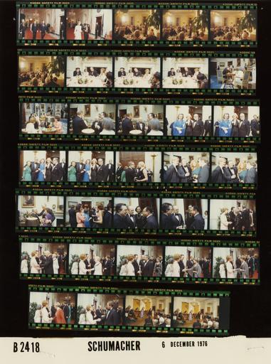 | Keywords: Ford B2418 NLGRF photo contact sheet (1976-12-06)(Gerald Ford Library).jpg White House Photographic Office WHPO is housed at the Gerald R Ford Presidential Library a branch of the National Archives and Records Administration NARA <br/><br/> This file is a 200 dpi photo contact sheet having images from roll of film B2418 of the August 9 1974 - January 20 1977 Gerald R Ford White House Photographic Office Series A0001-A9999 and B0001-B2886 photographs <br/><br/> The date on the photo contact sheet is the date the roll of film was processed not necessarily the date the photographs were taken See table below for additional details 1976-12-06 Gerald R Ford Presidential Library Image http //www fordlibrarymuseum gov/library/whphotos/B2418_NLGRF jpg B2418_NLGRF jpg from http //www fordlibrarymuseum gov/library/whphotos/19761206whpo pdf White House Photographs December 6 1976 of the http //www fordlibrarymuseum gov/Library/whphotos/whpo asp White House Photographic Collection page White House Photographic Office WHPO - Schumacher PD-USGov Institution Institution Gerald R Ford Presidential Library Table wikitable sortable + Photo contact sheet B2418 U S President Ford Administration Gerald R Ford Library Frame s Tone Subject proper Subject generic Names Geographic Location Photographer Date - 3A Color State Dinner for Giulio Andreotti President of the Council of Ministers of the Italian Republic walking toward East Room; Formal Wear GRF Giulio Andreotti Cross Hall Schumacher 1976-12-06 - 4A Color State Dinner for Giulio Andreotti President of the Council of Ministers of the Italian Republic walking toward East Room; Formal Wear Betty Ford Military Aide Cross Hall Schumacher 1976-12-06 - 5A-7A Color State Dinner for Giulio Andreotti President of the Council of Ministers of the Italian Republic GRF standing at right of frame; offering toast; others seated; formal wear; all not in every frame GRF Betty Ford Giulio Andreotti Guests State Dining Room Schumacher 1976-12-06 - 8A Color State Dinner for Giulio Andreotti President of the Council of Ministers of the Italian Republic Andreotti standing at right of frame; offering toast; others seated; formal wear; all not in rame GRF Betty Ford Giulio Andreotti Guests State Dining Room Schumacher 1976-12-06 - 9A-11A Color State Dinner for Giulio Andreotti President of the Council of Ministers of the Italian Republic; Interpreter Saxon seated at table talking; formal wear GRF Betty Ford Giulio Andreotti Pearl Bailey Joe Garagiola Anna Saxon State Dining Room Schumacher 1976-12-06 - 12A-13A Color State Dinner for Giulio Andreotti President of the Council of Ministers of the Italian Republic; Interpreter Saxon seated around tables; yalking; BF and Black not in 1st frame; formal wear GRF Betty Ford Giulio Andreotti Shirley Temple Black Anna Saxon Blue Room Schumacher 1976-12-06 - 14A-15A Color State Dinner for Giulio Andreotti President of the Council of Ministers of the Italian Republic; Interpreter Saxon standing talking; formal wear GRF Giulio Andreotti Unidentified Man Anna Saxon Blue Room Schumacher 1976-12-06 - 16A-17A Color State Dinner for Giulio Andreotti President of the Council of Ministers of the Italian Republic standing posing; formal wear Susan Ford Nelson Happy Rockefeller Grand Hall Schumacher 1976-12-06 - 18A-19A Color State Dinner for Giulio Andreotti President of the Council of Ministers of the Italian Republic standing posing; formal wear Susan Ford Nelson Happy Rockefeller Unidentified Couple Grand Hall Schumacher 1976-12-06 - 20A Color State Dinner for Giulio Andreotti President of the Council of Ministers of the Italian Republic standing talking; formal wear Susan Ford Rockefeller Grand Hall Schumacher 1976-12-06 - 21A-22A Color State Dinner for Giulio Andreotti President of the Council of Ministers of the Italian Republic standing talking; formal wear Steve Ford Cheney Unidentified Man Woman Blue Room Schumacher 1976-12-06 - 23A Color State Dinner for Giulio Andreotti President of the Council of Ministers of the Italian Republic standing talking; GRF with arms around both people; formal wear GRF Unidentified Man Woman Blue Room Schumacher 1976-12-06 - 24A Color State Dinner for Giulio Andreotti President of the Council of Ministers of the Italian Republic Kissinger and woman talking in foreground; others in background; formal wear Nancy Kinninger Unbidentified Woman Guests Blue Room Schumacher 1976-12-06 - 25A-26A Color Receiving Line at State Dinner for Giulio Andreotti President of the Council of Ministers of the Italian Republic greeting handshaking talking; formal wear GRF Giulio Andreotti Lionel Hampton Audrey Smaltz East Room Schumacher 1976-12-06 - 27A-34A Color Receiving Line at State Dinner for Giulio Andreotti President of the Council of Ministers of the Italian Republic; musician greeting handshaking talking; formal wear; all not in every frame GRF Betty Ford Giulio Andreotti Shirley Temple Black Guests East Room Schumacher 1976-12-06 - 35A-36A Color Entertainment at State Dinner for Giulio Andreotti President of the Council of Ministers of the Italian Republic Orlando Hopkins and Wilson performing on stage; others seated on left of frame; all not in every frame; taken from back of room Tony Orlando Telma Hopkins Joyce Wilson; GRF Betty Ford Giulio Andreotti Guests East Room Schumacher 1976-12-06 Gerald R Ford Presidential Library and Museum-cooperation PD-USGov Contact sheets by the Ford White House December 1976 |