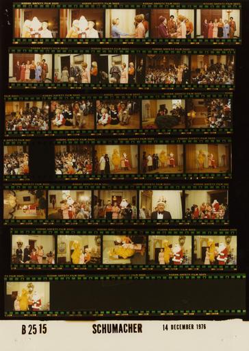 | Keywords: Ford B2515 NLGRF photo contact sheet (1976-12-14)(Gerald Ford Library).jpg White House Photographic Office WHPO is housed at the Gerald R Ford Presidential Library a branch of the National Archives and Records Administration NARA <br/><br/> This file is a 200 dpi photo contact sheet having images from roll of film B2515 of the August 9 1974 - January 20 1977 Gerald R Ford White House Photographic Office Series A0001-A9999 and B0001-B2886 photographs <br/><br/> The date on the photo contact sheet is the date the roll of film was processed not necessarily the date the photographs were taken See table below for additional details 1976-12-14 Gerald R Ford Presidential Library Image http //www fordlibrarymuseum gov/library/whphotos/B2515_NLGRF jpg B2515_NLGRF jpg from http //www fordlibrarymuseum gov/library/whphotos/19761214whpo pdf White House Photographs December 14 1976 of the http //www fordlibrarymuseum gov/Library/whphotos/whpo asp White House Photographic Collection page White House Photographic Office WHPO - Schumacher PD-USGov Institution Institution Gerald R Ford Presidential Library Table wikitable sortable + Photo contact sheet B2515 U S President Ford Administration Gerald R Ford Library Frame s Tone Subject proper Subject generic Names Geographic Location Photographer Date - 4A-7A Color Prior to Diplomatic Children's Christmas Party; Members of the Children's Committee of THIS The Hospitality and Information Service greeting handshaking standing posing; all not in every frame Betty Ford Mrs Swan Weber Mrs William Preston Mrs Aaron Jackson Mrs Michael Pew; Susan Ford East Room Schumacher 1976-12-14 - 8A-9A Color Prior to Diplomatic Children's Christmas Party standing smiling talking Betty Ford Susan Ford Unidentified Photographer Others East Room Schumacher 1976-12-14 - 10A-12A Color Diplomatic Children's Christmas Party BF on stage talking waving; children seated on floor; various angles and distances; all not in every frame; some children in native costumes Betty Ford Military Aide Children Others East Room Schumacher 1976-12-14 - 13A-14A Color Diplomatic Children's Christmas Party seated on floor; close up; all not in frames Children East Room Schumacher 1976-12-14 - 15A Color Diplomatic Children's Christmas Party; Cast Member from Sesame Street seated on steps to stage; Maria singing to boy; photographers to right Sesame Street Cast Maria Sonia Manzano Boy; Photographers East Room Schumacher 1976-12-14 - 16A-18A Color Diplomatic Children's Christmas Party seated waving; all not in every frame; some children in native costumes; flash damage Betty Ford Children East Room Schumacher 1976-12-14 - 19A-20A Color Diplomatic Children's Christmas Party; Cast Members from Sesame Street standing on stage; BF talking to Big Bird Betty Ford; Sesame Street Cast Susan Loretta Long Maria Sonia Manzano David Northern Callaway Mr Hooper Will Lee Big Bird Carroll Spinney Santa Claus Bill Nicholson East Room Schumacher 1976-12-14 - 21A Color Diplomatic Children's Christmas Party; Cast Members from Sesame Street standing on stage; BF and Santa waving at Big Bird Betty Ford; Big Bird Carroll Spinney Santa Claus Bill Nicholson East Room Schumacher 1976-12-14 - 22A Color Diplomatic Children's Christmas Party standing on stage Betty Ford Santa Claus Bill Nicholson East Room Schumacher 1976-12-14 - 23A Color Diplomatic Children's Christmas Party standing talking; some children in native costumes; all not in frame Betty Ford Santa Claus Bill Nicholson Children East Room Schumacher 1976-12-14 - 24A Color Diplomatic Children's Christmas Party standing posing; some children in native costumes; all not in frame Betty Ford Susan Ford Santa Claus Bill Nicholson Children East Room Schumacher 1976-12-14 - 25A Color Diplomatic Children's Christmas Party; White House Maitre'd standing posing wearing balloon hat; formal wear John Ficklin East Room Schumacher 1976-12-14 - 26A Color Diplomatic Children's Christmas Party mingling talking; some children in native costumes; all not in frame Betty Ford Susan Ford Santa Claus Bill Nicholson Children East Room Schumacher 1976-12-14 - 2A-3A Color Prior to Diplomatic Children's Christmas Party standing posing; faces washed out Betty Ford Susan Ford Santa Claus Bill Nicholson Cross Hall Schumacher 1976-12-14 - 27A Color Diplomatic Children's Christmas Party; White House Maitre'd mingling talking; some children in native costumes; all not in frame; Ficklin wearing balloon hat; formal wear Betty Ford John Ficklin Children East Room Schumacher 1976-12-14 - 28A-32A Color Diplomatic Children's Christmas Party; Sesame Street Character standing posing; various angles and distances; all not in every frame Betty Ford Susan Ford Santa Claus Bill Nicholson Big Bird Carroll Spinney State Dining Room Schumacher 1976-12-14 Gerald R Ford Presidential Library and Museum-cooperation PD-USGov Contact sheets by the Ford White House December 1976 |