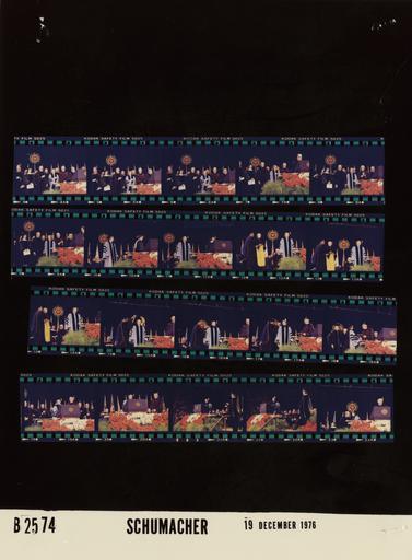 | Keywords: Ford B2574 NLGRF photo contact sheet (1976-12-19)(Gerald Ford Library).jpg  White House Photographic Office WHPO is housed at the Gerald R Ford Presidential Library a branch of the National Archives and Records Administration NARA <br/><br/> This file is a 200 dpi photo contact sheet having images from roll of film B2574 of the August 9 1974 - January 20 1977 Gerald R Ford White House Photographic Office Series A0001-A9999 and B0001-B2886 photographs <br/><br/> The date on the photo contact sheet is the date the roll of film was processed not necessarily the date the photographs were taken See table below for additional details 1976-12-19 Gerald R Ford Presidential Library Image http //www fordlibrarymuseum gov/library/whphotos/B2574_NLGRF jpg B2574_NLGRF jpg from http //www fordlibrarymuseum gov/library/whphotos/19761219whpo pdf White House Photographs December 19 1976 of the http //www fordlibrarymuseum gov/Library/whphotos/whpo asp White House Photographic Collection page White House Photographic Office WHPO - Schumacher PD-USGov Institution Institution Gerald R Ford Presidential Library Table wikitable sortable + Photo contact sheet B2574 U S President Ford Administration Gerald R Ford Library Frame s Tone Subject proper Subject generic Names Geographic Location Photographer Date - 4A-6A Color Trip to Michigan - Visit to the University of Michigan -Commencement and Presentation Of Honorary Doctor of Laws to Betty Ford standing singing National Anthem; GRF and BF with hands over hearts; academic robes; all not in frames GRF Betty Ford Platform Guests R Fleming D Baker P Brown D Laro R Nederlander S Power T Roach J Waters R Briggs R Brown G Huebner I Murphy E Power L Goodall W Moran H Johnson R Kennedy C Overberger M Radock F Rhodes R Haugh Others Ann Arbor MI University of Michigan -Crisler Arena - Floor Schumacher 1976-12-19 - 7A-9A Color Trip to Michigan -Visit to the University of Michigan -Commencement and Presentation Of Honorary Doctor of Laws to Betty Ford man standing at lectern speaking; others standing in background; academic robes; all not in frames GRF Betty Ford Platform Guests R Fleming D Baker P Brown D Laro R Nederlander S Power T Roach J Waters R Briggs R Brown G Huebner I Murphy E Power L Goodall W Moran H Johnson R Kennedy C Overberger M Radock F Rhodes R Haugh Others Ann Arbor MI University of Michigan -Crisler Arena -Floor Schumacher 1976-12-19 - 10A Color Trip to Michigan -Visit to the University of Michigan -Commencement and Presentation Of Honorary Doctor of Laws to Betty Ford walking toward lectern; academic robes Betty Ford Unidentified Woman Ann Arbor MI University of Michigan -Crisler Arena -Floor Schumacher 1976-12-19 - 11A Color Trip to Michigan - Visit to the University of Michigan -Commencement and Presentation Of Honorary Doctor of Laws to Betty Ford woman at lectern speaking; BF standing to woman's right; academic robes Betty Ford Unidentified Woman Ann Arbor MI University of Michigan -Crisler Arena - Floor Schumacher 1976-12-19 - 12A-15A Color Trip to Michigan - Visit to the University of Michigan -Commencement and Presentation Of Honorary Doctor of Laws to Betty Ford BF standing others putting Doctor of Laws Hood on BF; academic robes Betty Ford Nellie Varner Robert Doerr Ann Arbor MI University of Michigan -Crisler Arena - Floor Schumacher 1976-12-19 - 16A-17A Color Trip to Michigan -Visit to the University of Michigan -Commencement and Presentation Of Honorary Doctor of Laws to Betty Ford BF standing others putting Doctor of Laws Hood on BF; man standing at lectern; academic robes Betty Ford Nellie Varner Robert Doerr Unidentified Man Ann Arbor MI University of Michigan -Crisler Arena -Floor Schumacher 1976-12-19 - 18A Color Trip to Michigan -Visit to the University of Michigan -Commencement and Presentation Of Honorary Doctor of Laws to Betty Ford BF standing wearing Doctor of Laws Hood; others standing; NF handshaking with man at lectern; academic robes Betty Ford Nellie Varner Robert Doerr Unidentified Man Ann Arbor MI University of Michigan -Crisler Arena -Floor Schumacher 1976-12-19 - 19A-20A Color Trip to Michigan -Visit to the University of Michigan -Commencement and Presentation Of Honorary Doctor of Laws to Betty Ford standing at lectern; academic robes Betty Ford Unidentified Man Ann Arbor MI University of Michigan -Crisler Arena -Floor Schumacher 1976-12-19 - 21A-22A Color Trip to Michigan - Visit to the University of Michigan -Commencement and Presentation Of Honorary Doctor of Laws to Betty Ford BF at lectern others seated in background; various angles and distances; all not in frames; academic robes GRF Betty Ford Platform Guests R Fleming D Baker P Brown D Laro R Nederlander S Power T Roach J Waters R Briggs R Brown G Huebner I Murphy E Power L Goodall W Moran H Johnson R Kennedy C Overberger M Radock F Rhodes R Haugh Others Ann Arbor MI University of Michigan -Crisler Arena - Floor Schumacher 1976-12-19 - 23A Color Trip to Michigan -Visit to the University of Michigan -Commencement and Presentation Of Honorary Doctor of Laws to Betty Ford Fleming at lectern speaking; GRF and BF about to kiss in background; academic robes GRF Betty Ford Robben Fleming Ann Arbor MI University of Michigan -Crisler Arena -Floor Schumacher 1976-12-19 Gerald R Ford Presidential Library and Museum-cooperation PD-USGov Contact sheets by the Ford White House December 1976  |