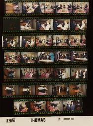 Keywords: Ford B2667 NLGRF photo contact sheet (1977-01-05)(Gerald Ford Library).jpg White House Photographic Office WHPO is housed at the Gerald R Ford Presidential Library a branch of the National Archives and Records Administration NARA <br/><br/> This file is a 200 dpi photo contact sheet having images from roll of film B2667 of the August 9 1974 - January 20 1977 Gerald R Ford White House Photographic Office Series A0001-A9999 and B0001-B2886 photographs <br/><br/> The date on the photo contact sheet is the date the roll of film was processed not necessarily the date the photographs were taken See table below for additional details 1977-01-05 Gerald R Ford Presidential Library Image http //www fordlibrarymuseum gov/library/whphotos/B2667_NLGRF jpg B2667_NLGRF jpg from http //www fordlibrarymuseum gov/library/whphotos/19770105whpo pdf White House Photographs January 5 1977 of the http //www fordlibrarymuseum gov/Library/whphotos/whpo asp White House Photographic Collection page White House Photographic Office WHPO - Thomas PD-USGov Institution Institution Gerald R Ford Presidential Library Table wikitable sortable + Photo contact sheet B2667 U S President Ford Administration Gerald R Ford Library Frame s Tone Subject proper Subject generic Names Geographic Location Photographer Date - 4 Color Dinner Hosted by the Cabinet in Honor of President Mrs Ford standing talking; all not facing camera; formal wear Kissinger Happy Rockefeller Mathews Kleppe Hartmann Scranton Others Washington DC F Street Club Thomas 1977-01-05 - 5-19 Color Dinner Hosted by the Cabinet in Honor of President Mrs Ford standing; holding stapled sheets of paper possibly lyrics and people singing; various angles and distances; all not in every frame; formal wear; one frame blank GRF Betty Ford Lynn Coleman Rumsfeld Richardson Carla Hills Simon Usery Kissinger Happy Rockefeller Mathews Kleppe Hartmann Scranton Rockefeller Levi Roderick Hills Buchen Others Washington DC F Street Club Thomas 1977-01-05 - 20 Color Dinner Hosted by the Cabinet in Honor of President Mrs Ford standing raising glasses for toast; formal wear GRF Carla Hills Simon Usery Lynn Others Washington DC F Street Club Thomas 1977-01-05 - 21-23 Color Dinner Hosted by the Cabinet in Honor of President Mrs Ford bending looking at something on round table; all not in every frame; formal wear GRF Carla Hills Usery Rumsfeld Others Washington DC F Street Club Thomas 1977-01-05 - 24 Color Dinner Hosted by the Cabinet in Honor of President Mrs Ford GRF and Coleman handshaking; others stnding by; formal wear GRF Carla Hills Lynn Coleman Washington DC F Street Club Thomas 1977-01-05 - 25-26 Color Dinner Hosted by the Cabinet in Honor of President Mrs Ford seated on sofa talking laughing; formal wear Bunny Buchen Kate Levi Unidentified Woman Washington DC F Street Club Thomas 1977-01-05 - 27 Color Dinner Hosted by the Cabinet in Honor of President Mrs Ford seated on sofa talking; formal wear Buchen Unidentified Woman Washington DC F Street Club Thomas 1977-01-05 - 28-32 Color Dinner Hosted by the Cabinet in Honor of President Mrs Ford BF and NAR dancing; others in background; only BF and NAR in every frame; formal wear Betty Ford Rockefeller Others Washington DC F Street Club Thomas 1977-01-05 - 33 Color Dinner Hosted by the Cabinet in Honor of President Mrs Ford dancing; formal wear Scranton Unidentified Woman Washington DC F Street Club Thomas 1977-01-05 - 34-36 Color Dinner Hosted by the Cabinet in Honor of President Mrs Ford HAK and man standing woman seated talking; man in business suit; formal wear Kissinger Unidentified Man Woman Washington DC F Street Club Thomas 1977-01-05 - 37 Color Dinner Hosted by the Cabinet in Honor of President Mrs Ford standing talking smiling; formal wear Kissinger Unidentified Man Washington DC F Street Club Thomas 1977-01-05 Gerald R Ford Presidential Library and Museum-cooperation PD-USGov Contact sheets by the Ford White House January 1977 |