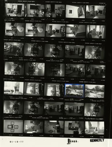 | Keywords: Ford B2823 NLGRF photo contact sheet (1977-01-18)(Gerald Ford Library).jpg  White House Photographic Office WHPO is housed at the Gerald R Ford Presidential Library a branch of the National Archives and Records Administration NARA <br/><br/> This file is a 200 dpi photo contact sheet having images from roll of film B2823 of the August 9 1974 - January 20 1977 Gerald R Ford White House Photographic Office Series A0001-A9999 and B0001-B2886 photographs <br/><br/> The date on the photo contact sheet is the date the roll of film was processed not necessarily the date the photographs were taken See table below for additional details 1977-01-18 Gerald R Ford Presidential Library Image http //www fordlibrarymuseum gov/library/whphotos/B2823_NLGRF jpg B2823_NLGRF jpg from http //www fordlibrarymuseum gov/library/whphotos/19770118whpo pdf White House Photographs January 18 1977 of the http //www fordlibrarymuseum gov/Library/whphotos/whpo asp White House Photographic Collection page White House Photographic Office WHPO <br/> Creator David Hume Kennerly PD-USGov Institution Institution Gerald R Ford Presidential Library Table wikitable sortable + Photo contact sheet B2823 U S President Ford Administration Gerald R Ford Library Frame s Tone Subject proper Subject generic Names Geographic Location Photographer Date - 2-4 BW Last-Minute Packing of Ford Material Prior to Transition to President Jimmy Carter seated at desk working; packed boxes in foreground Unidentified Woman Unidentified White House Office Kennerly 1977-01-18 - 5 BW Last-Minute Packing of Ford Material Prior to Transition to President Jimmy Carter GRF's Briefcase on table; open filled with eyeglass cases and other small objects Second Floor - President's Bedroom Kennerly 1977-01-18 - 6-11 BW Last-Minute Packing of Ford Material Prior to Transition to President Jimmy Carter packing taking inventory; roll of bubblewrap in foreground in some frames; both not in every frame Two Unidentified Men Second Floor - President's Bedroom Kennerly 1977-01-18 - 12-26 BW Last-Minute Activities Prior to Transition to President Jimmy Carter practicing golf swing into net; furniture glassware and ceramic furnishings; various angles and distance GRF Third Floor - Cross Hall Kennerly 1977-01-18 - 27-31 BW Departure for National War College Fort McNair Arlington Virginia VA walking toward driveway; back toward camera; driveway and limousine in background; taken from door of Oval Office; snow on ground GRF Sidewalk between Oval Office and South Driveway Kennerly 1977-01-18 - 32 BW Last-Minute Packing of Ford Material Prior to Transition to President Jimmy Carter four framed certificates on wall Second Floor - President's Bedroom Kennerly 1977-01-18 - 33-36 BW Last-Minute Packing of Ford Material Prior to Transition to President Jimmy Carter packing boxes; moving boxes on two-wheeler; various angles and distances; both not in every frame Unidentified Men Second Floor - President's Bedroom Kennerly 1977-01-18 Gerald R Ford Presidential Library and Museum-cooperation PD-USGov Contact sheets by the Ford White House January 1977 Photographs by David Hume Kennerly from 1977 |