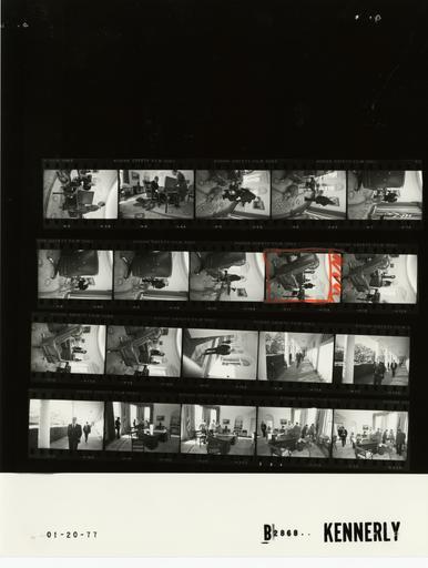 | Keywords: Ford B2868 NLGRF photo contact sheet (1977-01-20)(Gerald Ford Library).jpg White House Photographic Office WHPO is housed at the Gerald R Ford Presidential Library a branch of the National Archives and Records Administration NARA <br/><br/> This file is a 200 dpi photo contact sheet having images from roll of film B2868 of the August 9 1974 - January 20 1977 Gerald R Ford White House Photographic Office Series A0001-A9999 and B0001-B2886 photographs <br/><br/> The date on the photo contact sheet is the date the roll of film was processed not necessarily the date the photographs were taken See table below for additional details 1977-01-20 Gerald R Ford Presidential Library Image http //www fordlibrarymuseum gov/library/whphotos/B2868_NLGRF jpg B2868_NLGRF jpg from http //www fordlibrarymuseum gov/library/whphotos/19770120whpo pdf White House Photographs January 20 1977 of the http //www fordlibrarymuseum gov/Library/whphotos/whpo asp White House Photographic Collection page White House Photographic Office WHPO <br/> Creator David Hume Kennerly PD-USGov Institution Institution Gerald R Ford Presidential Library Table wikitable sortable + Photo contact sheet B2868 U S President Ford Administration Gerald R Ford Library Frame s Tone Subject proper Subject generic Names Geographic Location Photographer Date - 3-4 BW Final Arrangements in Oval Office Prior to Inauguration of Jimmy Carter; Pet Golden Retriever GRF seated at desk talking to Downton; dog seated to right of GRF; Downton leaning forward; briefcase open; dog lying nearby GRF Downton Liberty or Misty Oval Office Kennerly 1977-01-20 - 5-10 BW Preparing to Leave Oval Office for Final Time Prior to Inauguration of Jimmy Carter; Pet Golden Retriever GRF walking from desk stopping hands on hips looking at desk; dog walking behind GRF Liberty or Misty Oval Office Kennerly 1977-01-20 - 11-14 BW Preparing to Leave Oval Office for Final Time Prior to Inauguration of Jimmy Carter walking away from camera hands on hips approaching doorway to Colonnade; desk in foreground; long shots from across room GRF Oval Office Kennerly 1977-01-20 - 15-18 BW Walking Along Colonnade for Final Time Prior to Inauguration of Jimmy Carter GRF walking alone hands in pockets approaching camera; others following at a distance GRF; Others Colonnade Kennerly 1977-01-20 - 19-22 BW Clearing Office Prior to Inauguration of Jimmy Carter - Transition from White House clearing GRF's desk and credenza packing boxes; others standing watching Downton White House or National Archives staff; Others Oval Office Kennerly 1977-01-20 Gerald R Ford Presidential Library and Museum-cooperation PD-USGov Contact sheets by the Ford White House January 1977 Photographs by David Hume Kennerly from 1977 |