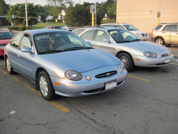 Keywords: Ford D186.jpg en A 1998-1999 Ford Taurus sedan and a 1998-1999 Mercury Sable wagon photographed in Jamestown NY own Reelcheeper 2010-07-06 Ford Taurus 1995 “1999 Mercury Sable third generation