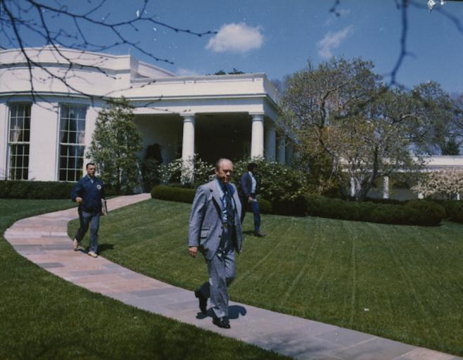 | Keywords: Ford walking on sidewalk between Oval Office and South Driveway 3.jpg en President Gerald R Ford walking on the sidewalk between the Oval Office and the South Driveway in April 1975 1975-04-20 Gerald R Ford Presidential Library Image http //www fordlibrarymuseum gov/library/whphotos/A4091A_NLGRF jpg A4091A_NLGRF jpg from http //www fordlibrarymuseum gov/library/whphotos/19750420whpo pdf White House Photographs April 20 1975 of the http //www fordlibrarymuseum gov/Library/whphotos/whpo asp White House Photographic Collection page White House Photographic Office WHPO - Schumacher PD-USGov Ford A4091A NLGRF photo contact sheet 1975-04-20 Gerald Ford Library jpg Institution Institution Gerald R Ford Presidential Library Gerald R Ford Presidential Library and Museum-cooperation PD-USGov Gerald Ford in 1975 White House in 1975 Photographs by Karl Schumacher White House South Lawn |