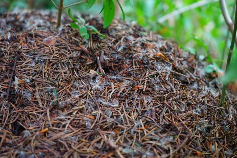 Keywords: forest ant hill wood ants formica polyctena ant ant population ant hill build crawl red waldameisen pine needles construction material