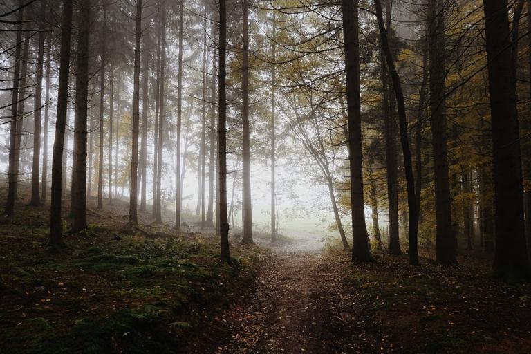 Keywords: forest away morning trees nature landscape autumn on foot trail just fog back light hiking green forest path wanderer hike road leaves promenade atmosphere edge of the woods mood tribe golden autumn