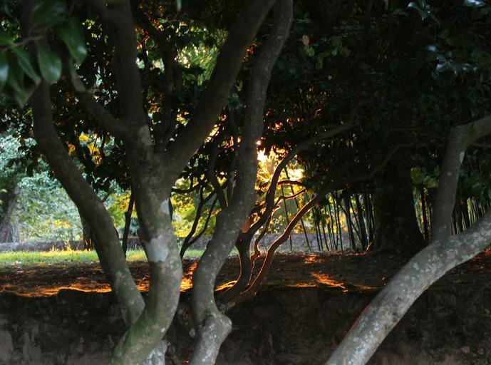 Keywords: forest backlight sunbeams darkness sunset park landscape sun