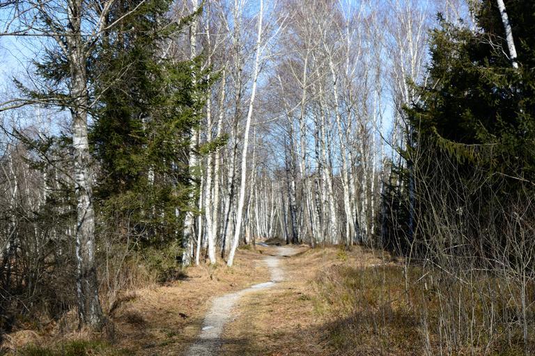 Keywords: forest hiking leisure recovery nature away trail promenade migratory path path trees birch forest path autumn winter