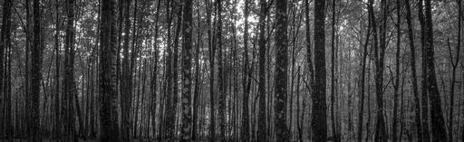Keywords: forest hornbeam tree a lot black and white panorama black and white photo