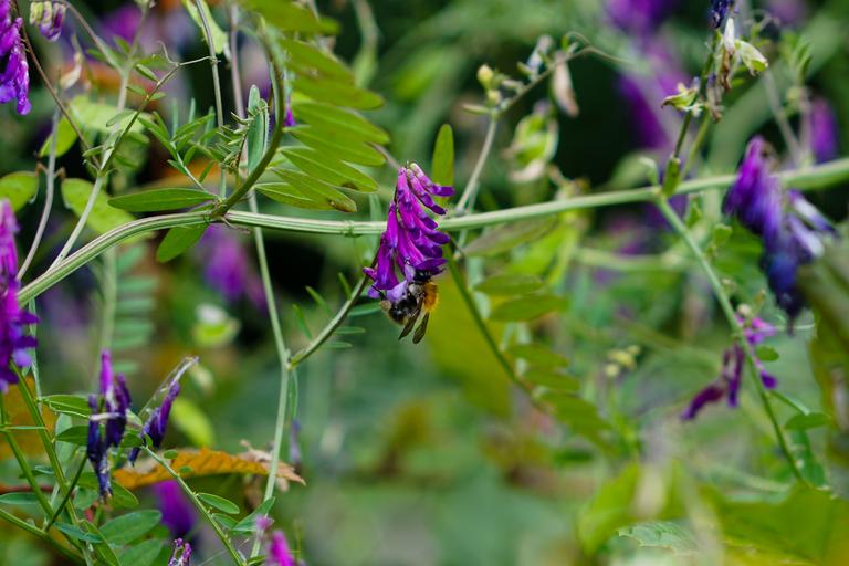 Keywords: forest leaves purple flower leaf nature plant purple flowers violet hummel insect yellow black fly sprinkle honey wild flower shaggy vetch fabaceae leguminous foliage fell leaflets grow out garden spring blossom bloom close green