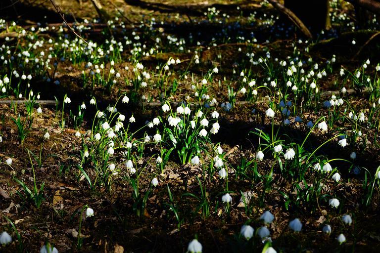 Keywords: forest snowflake forest floor spring flower blossom bloom flower spring white forest flower fruehlingsknotenblume bloom spring knotenblume maerzgloeckchen beautiful idyllic great snowdrops leucojum vernum amaryllidaceae leucojum plant zwiebelpflanze stalk bell