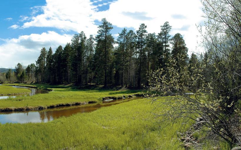Keywords: forest trees nature woods environment meadow field water stream sky foliage season summer scenery rural environmental woodland grass wilderness outdoors country idyllic