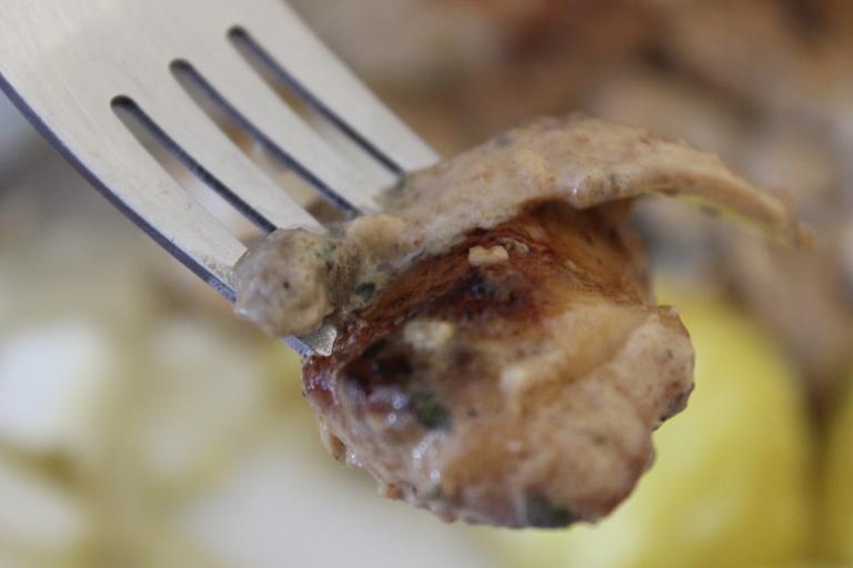 Keywords: fork meat cutlery food edible cut eat delicious frisch dine turkey turkey meat meal court mushrooms