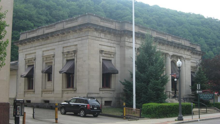 Keywords: Former Oil City post office.jpg 77001197 41 26 9 N 79 42 33 W Front and southern side of the former w U S Post Office Oil City Pennsylvania U S Post Office in Oil City Pennsylvania United States Built in 1906 at 270 Seneca Street it has been converted into a history museum The post office is listed on the National Register of Historic Places and is a Register-listed Historic district contributing property of the Oil City Downtown Commercial Historic District own 2013-06-22 User Nyttend Nyttend Former post offices in Pennsylvania History museums in Pennsylvania Oil City Pennsylvania Built in Pennsylvania in 1906 Historic district contributing properties in Pennsylvania National Register of Historic Places in Venango County Pennsylvania Stone buildings in Pennsylvania Beaux-Arts architecture in Pennsylvania Building-centered pictures by User Nyttend Taken with Canon PowerShot A540 James Knox Taylor