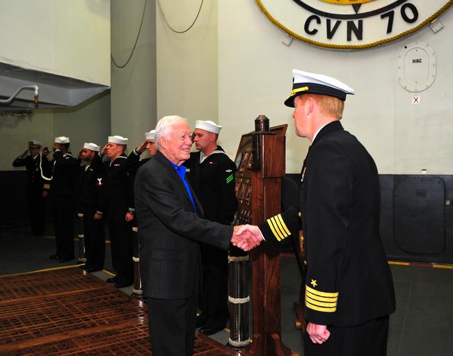 Keywords: Former President Jimmy Carter visits USS Carl Vinson. (8516136090).jpg CORONADO Calif Feb 22 2013 Former president Jimmy Carter is greeted by Capt Kent D Whalen commanding officer of the aircraft carrier USS Carl Vinson CVN 70 in the ship's hangar bay Carter former first lady Rosalynn Carter and former Secretary of the Navy John Dalton visited Carl Vinson with more than 200 members of The Carter Center U S Navy photo by Mass Communication Specialist Seaman Iain L Stratton/Released 130222-N-EH921-062 Join the conversation http //www facebook com/USNavy www facebook com/USNavy http //www twitter com/USNavy www twitter com/USNavy http //navylive dodlive mil navylive dodlive mil https //www flickr com/photos/usnavy/8516136090/ Former President Jimmy Carter visits USS Carl Vinson 2013-02-28 09 16 https //www flickr com/people/56594044 N06 Official U S Navy Page from United States of America PD-USNavy Official U S Navy Imagery https //flickr com/photos/56594044 N06/8516136090 2016-12-14 04 13 57 United States Government Work Naval ships of the United States Files from the U S Navy Flickr stream Files uploaded by Reguyla People of the United States Navy |