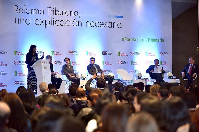 Keywords: La difícil coyuntura económica generada por la caída en los precios del petróleo y la caída de la inversión, entre otros factores, llevó a la necesidad de plantear una reforma tributaria estructural para aumentar el recaudo. Para profundizar y debatir sobre el proyecto presentado por el Gobierno Nacional ante el Congreso de la República, la Fundación Buen Gobierno y la Cámara de Comercio de Bogotá adelantaron este foro con la presencia del Ministro de Hacienda y el director de la DIAN. Expertos tributaristas y representantes de gremios ante más de mil asistentes, debatieron el tema y dieron luces sobre la conveniencia de la reforma. /Crédito CCB. cámara de comercio bogotá