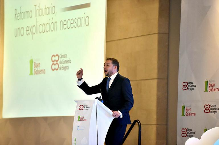 | Keywords: La difícil coyuntura económica generada por la caída en los precios del petróleo y la caída de la inversión, entre otros factores, llevó a la necesidad de plantear una reforma tributaria estructural para aumentar el recaudo. Para profundizar y debatir sobre el proyecto presentado por el Gobierno Nacional ante el Congreso de la República, la Fundación Buen Gobierno y la Cámara de Comercio de Bogotá adelantaron este foro con la presencia del Ministro de Hacienda y el director de la DIAN. Expertos tributaristas y representantes de gremios ante más de mil asistentes, debatieron el tema y dieron luces sobre la conveniencia de la reforma. /Crédito CCB. cámara de comercio bogotá |