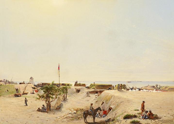 Keywords: outdoor shore seaside landscape coast beach "Interior view of Fort Moultrie while the fortifications are being built. Shows the old Moultrie House, Battery Beauregard and Battery Marion. Lieutenant Martin is on a horse belonging to Col. Tabb of the 59th Va. Regt." Conrad Wise Chapman, 1898 The American Civil War Museum, Richmond, Va "Interior view of Fort Moultrie while the fortifications are being built. Shows the old Moultrie House, Battery Beauregard and Battery Marion. Lieutenant Martin is on a horse belonging to Col. Tabb of the 59th Va. Regt." Conrad Wise Chapman, 1898 The American Civil War Museum, Richmond, Va |