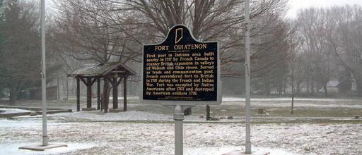 | Keywords: Fort Ouiatenon marker.png 40 24 23 3 N 86 57 47 9 W region US-IN_heading SE The historical marker at Fort Ouiatenon in Tippecanoe County Indiana It reads <blockquote> Fort Ouiatenon<br /> First post in Indiana area built nearby in 1717 by French Canada to counter British expansion in valleys of Wabash and Ohio rivers Served as trade and communication post French surrendered fort to British in 1761 during the French and Indian War Fort was occupied by Native Americans after 1763 and destroyed by American soldiers 1791 </blockquote> self-photographed 2007-01-28 Huw Williams Huwmanbeing I release this photo into the public domain Files by User Huwmanbeing 2007 in Indiana Fort Ouiatenon Historical markers in Indiana Landmarks in Indiana Native American culture Winter in Indiana |