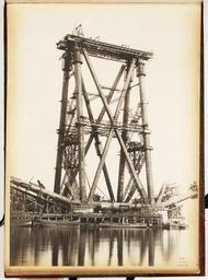 Keywords: Forth Bridge - Fife cantilever, at full height from village pier.jpg Photograph of the Fife cantilever at full height from village pier A picture taken from a north-westerly position so that the 4 vertical columns and 2 pairs of struts are all clear of each other The foreground is exceptionally fine for the day having been absolutely still the heavy shadows of the tubes are reflected in the smooth water which together with the steamboats lying at the pier produce an effect rarely seen in a picture of this class and combine to make this view one of the most popular Transcription from Philip Phillips 'The Forth Railway Bridge' Edinburgh 1890 Size cm 58 43 exhibition history Institution National Library of Scotland photograph object history PD-old-70-1923 Creator Philip Phillips RB l 229 74570352 Forth Bridge - Fife cantilever at full height from village pier Uploaded with GWToolset Forth Bridge - Fife cantilever at full height from village pier http //deriv nls uk/56YK98Q/7443/74438675 2 jpg Construction of the Forth Bridge Images uploaded as part of NLS-WMUK collaboration |