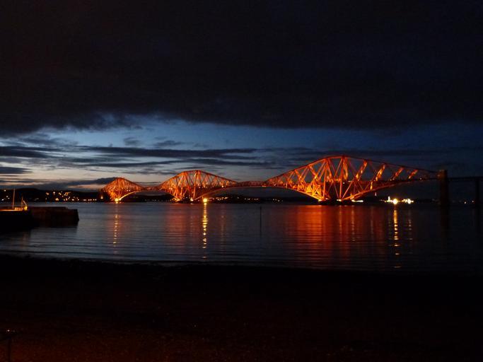 Keywords: forth road railway bridge railway bridge scotland route rail bridge night steel