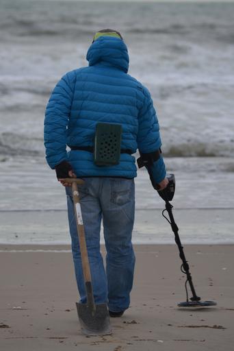 Keywords: fortune-hunter man people sea beach winter clothing metal detector search