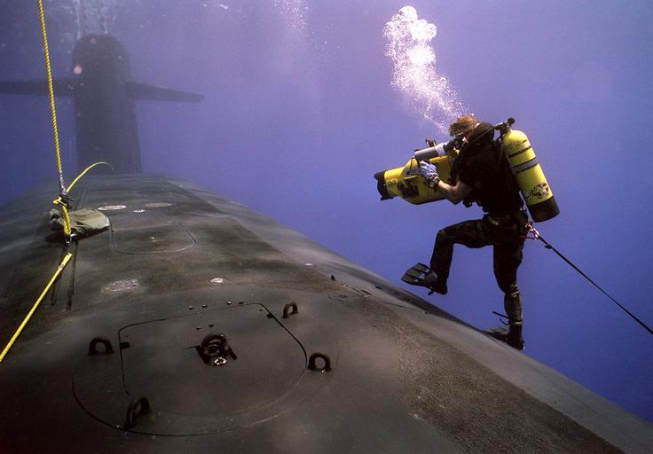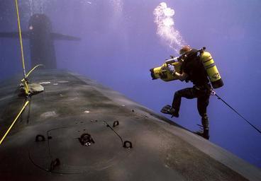 | Keywords: Forward hull of the submerged USS WOODROW WILSON (SSBN 624).jpeg  en A photographer's mate/diver aims his camera at a hatch in the forward hull of the submerged nuclear-powered strategic missile submarine USS Woodrow Wilson SSBN-624 while waiting for a Navy sea-air-land SEAL team member to emerge The cameraman is on hand to videotape members of the SEAL team as they practice entering and exiting the submarine during lock-out procedures off the coast of Puerto Rico 1991-09-01 https //research archives gov/id/6475544 6475544 Department of Defense Department of the Navy Naval Imaging Command PD-USGov other versions PD-USGov-Military USS Woodrow Wilson SSBN-624 Underwater video equipment Underwater divers Uploaded with UploadWizard |