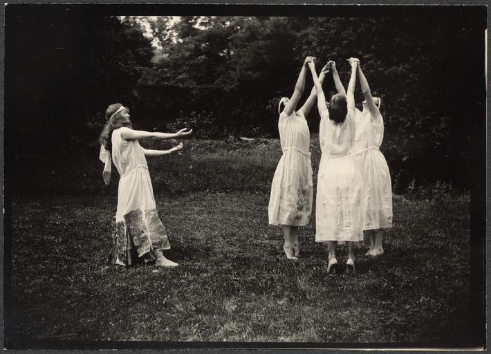 | Keywords: Forward into Light pageant 159058v.jpg A group of ritualists from the Forward into Light pageant which will close the Women for Congress conference of the National Woman's Party at Westport-on-Lake-Champlain New York August 15-16-17 Miss Eleanor Van Buskirk of New York City a student at Hamilton Institute daughter of Mr and Mrs A H Van Buskirk leads the group 1924 Aug Summary Photograph of four women dressed in white costumes dancing outside Title transcribed from item 1 photograph print 5 x 7 in accession number Call Number Location National Woman's Party Records Group I Container I 159 Folder Inez Milholland Memorial Westport N Y 1923 Source Collection Records of the National Woman's Party institution Library of Congress Manuscript Division http //hdl loc gov/loc mss/mnwp 159058 PD-old suffragettes |