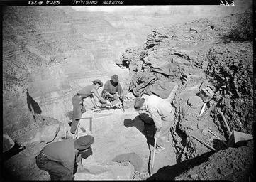 Keywords: geology paleontology national park service nationalparkservice fossils history historic cultural blackandwhite monochrome surreal outdoor photo border black and white Civilian Conservation Corps circa 1937 at fossl fern quarry on Kaibab Trail (Grand Canyon National Park, Arizona). (NPS Photo) Civilian Conservation Corps circa 1937 at fossl fern quarry on Kaibab Trail (Grand Canyon National Park, Arizona). (NPS Photo) |