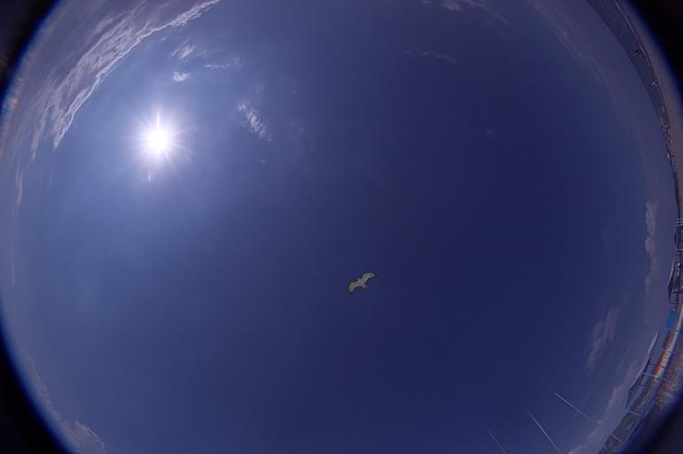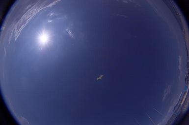 Keywords: Foto-wiki-Peleng-Sky-Sun-1.jpg Peleng 8/3 5 full sky with the Sun Seagull is lightened by flash own 2007-08-20 Sergej Qkowlew Fisheye images Blue sky