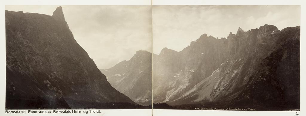 | Keywords: Fotografi av Romsdals horn och Troldt. Romsdalen, Norge. Panorama - Hallwylska museet - 105695.tif  LSH artwork sv Panorama av Romsdalshorn och Troldt I II Romsdalen Norge Fotografierna LXVI K J 01 -K J 48 är inköpta av Johanna Kempe f Wallis i Bergen och Kristiania vid hennes vistelse i nämnda städer tillsammans med fröken Caroline Pflaum under deras resa från Trondhjem till Kristiania 20 juli - 6 september 1890 original caption Fotografi av Romsdals horn och Troldt Romsdalen Norge Panorama<br/> Nyckelord Fjäll Berg Romsdal Fotografi Panorama Norge Foto Resealbum 1890 paper HWY place of origin Romsdalen NO original filename hm_dig18269 113571 inventory number HWY LXVI K J 06 105695 PD Jenny Bergensten Mountains of Norway Møre og Romsdal Panoramics in Norway Historical photographs Jenny Bergensten Media contributed by LSH 2016-12 Bild från Johanna Kempe f Wallis resor genom Norge 1890 |