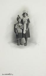 Keywords: Fotografier från julaftnar - Hallwylska museet - 105368.tif LSH artwork sv FOTOGRAFIER m m FRÅN JULAFTNAR firade med familjen von Geijer 1 Från år 1913 på Wegeholm Fotografi Av Margit och Erik von Geijer som småbarn I högra nedre hörnet signerat Emil Bruno Hälsingborg Höjd 19 cm; bredd 11 cm Gåva till Wilhelmina von Hallwyl januari eller februari 1914 från hennes dotter Irma 2 Från år 1914 på Wegeholm Julgransflagga svensk Av silkespapper med stång av ståltråd Längs korsets horisontala del med svart bläck skrivet Hopp och Trohet Jul 1914 Längd 13 cm bredd 7 cm Stång längd 12 cm Gåva till Walther von Hallwyl Julaftonen 1914 från hans dotterdotter och dotterson Margit och Erik von Geijer Julgransflagga svensk och två fotografier Flagga Som den nyss beskrivna Fotografier På kort 1 Margit von Geijer som Svea stående med utslaget hår i fotsid vit dräkt med slöja pannband mörkt axelband och sandaler i högra handen Sveriges flagga med stången stödd mot marken i vänstra handen riksskölden med Lilla riksvapnet Tre kronor På kort 2 Erik von Geijer som tomte På båda i högra nedre hörnet signerat Emil Bruno Hälsingborg Kort 1 höjd 17 5 cm bredd 7 5 cm Kort 2 höjd 17 7 cm bredd 7 5 cm Gåva till Wilhelmina von Hallwyl Julaftonen 1914 från hennes dotterdotter och dotterson Margit och Erik von Geijer För beskrivning av julfirandet på Wegeholm se detta inv nummer i katalogverket Flaggorna inköpta av Irma von Geijer hos en handlare i Hälsingborg Fotografierna tagna Januari 1915 hos fotografen Emil Bruno Helsingborg 3 Från år 1915 på Wegeholm Solros Helianthus Av silkespapper och sammet med stjälk av ståltråd Blomkorg av gult kräpperat papper samt brun sammet stjälken lindad med grönt papper med foderblad och tre stjälkblad av dylikt papper Stjälk längd 31 cm Blomma diameter 14 cm Gåva till Walther von Hallwyl Julaftonen 1915 från hans dotterdotter och dotterson Margit och Erik von Geijer Solros Helianthus och två fotografier Solros Som den nyss beskrivna Fotografier På kort 1 Margit och Erik von Geijer stående hand i hand; båda klädda till änglar I högra nedre hörnet signerat Emil Bruno Hälsingborg Höjd 11 8 cm bredd 16 7 cm På kort 2 Samma barn stående i de s k arkaderna framför en dörr på Wegeholms borg samt hållande i dragstången till en blomstersmyckad liten vagn; båda klädda som på kort 1 Gåva till Wilhelmina von Hallwyl f Kempe julaftonen 1915 från Margit och Erik Geijer För detaljer om julfirandet se detta inv nr i katalogverket Fotografierna tagna Februari 1916 av fotografen Emil Bruno Helsingborg 4 Från år 1916 på Wegeholm Docka Lockigt ljusgult hår blåa ögon och röda läppar; clownkostym med bred krage och toppig mössa; på kostymen stora blåa rosetter av silkespapper Längd utan mössa 16 5 cm Mössa höjd 3 8 cm Gåva till Walther von Hallwyl julaftonen 1916 från Margit och Erik von Geijer Docka och fotografi Docka Som den nyss beskrivna Fotografi Margit och Erik von Geijer som Pierrette och Pierrot I högra nedre hörnet signerat Emil Bruno Hälsingborg Höjd 17 9 cm Bredd 12 4 cm Gåva till Wilhelmina von Hallwyl f Kempe Julaftonen 1916 från Margit och Erik von Geijer För detaljer om julfirandet se detta inv nr i katalogverket 5 Från år 1917 i Hamngatan 4 Stockholm Stjärna med spira Stjärna av guldpapper spira av trä Längd 34 5 cm Stjärna diameter 12 cm Spira längd 25 cm Gåva till Walther von Hallwyl Julaftonen 1917 från Margit och Erik von Geijer För detaljer om julfirandet se detta inventarienummer i katalogverket Fotografien tagen Februari 1918 av fotografen Herm Hamnqvist Atelier Bruno Södra Storgatan 3 Helsingborg 6 Från år 1918 i Hamngatan 4 Stockholm Penséer två stycken Av vitt s k engelskt skinn bomullssatin med stjälk av ståltråd Pressade samt handmålade i färger den ena med vit och den andra med gul mitt; stjälkarna gröna lindade med tyg som blommorna vardera med ett grönt stjälkblad Längd omkring 18 cm Gåva till Walther von Hallwyl julaftonen 1918 från Margit och Erik von Geijer Penséer två stycken och fotografi Penséer Som de nyss beskrivna Fotografi Margit och Erik von Geijer stående klädda till penséer Till höger om bilderna signerat Ferd Flodin -19 Höjd 22 8 cm Bredd 14 5 cm Gåva till Wilhelmina von Hallwyl Julaftonen 1918 från Margit och Erik von Geijer Penséerna inköpta av Irma von Geijer hos en handlare i Helsingborg Fotografien tagen 28 December 1918 av fotografen Ferd Flodin Hamngatan 3 A Stockholm 7 Från år 1919 i Hamngatan 4 Stockholm Snöboll Av vit bomullsvadd Oregelbundet klotrund utanpå beströdd med frostliknande silverglitter samt utan snöre Genomskärning omkring 4 cm Gåva till Walther von Hallwyl Julaftonen 1919 från Margit och Erik von Geijer Snöboll och fotografi Snöboll Som den nyss beskrivna Fotografi Margit och Erik von Geijer stående vända halvt åt vänster Den förstnämnda till höger båda i stor rund mössa och lång kappa av vadd med glitter samt vita strumpor; framför figurerna två stora snöbollar I högra nedre hörnet signerat Brink Foto Höjd 16 6 cm Bredd 11 2 cm Gåva till Wilhelmina von Hallwyl f Kempe julaftonen 1919 från Margit Johanna och Erik von Geijer För detaljer om julfirandet se detta inv nr i katalogverket Snöbollarna inköpta av Irma von Geijer i Buttericks Mönsteraffär Stockholm Fotografien tagen Januari 1920 av fotografen Gustaf Brink Ängelholm 8 Från år 1920 i Hamngatan 4 Stockholm Skogstomte I form av en brandgul flugsvamp Av tyg bommullsvadd och trä m m Höjd 10 8 cm Hatt diameter 9 1 cm Fotplatta diameter 5 9 cm Gåva till Walther von Hallwyl Julaftonen 1920 från Margit och Erik von Geijer Skogstomte och fotografi Skogstomte Som den nyss beskrivna men röd med vita plättar på svamphatten på kortet vid högra änden målat ett paket under en drypande lacktång Fotografi Margit och Erik von Geijer samt Elionore Joseph alla stående Erik prins i ljus dräkt