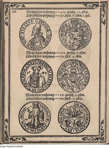 | Keywords: Fotothek df tg 0002308 Geldwesen ^ Münzwesen ^ Münze ^ Taler.jpg Scan Deutsche Fotothek df_tg_0002308 color 2007 MIK-Center Berlin GmbH 88962308 26 Leipzig Taler der Herzöge von Mecklenburg Papier Holzschnitt 17 7 x 13 cm Geldwesen Münzwesen Münze Taler ppn266173098 1573 Druck Deutsche Fotothek gefördert von der Deutschen Forschungsgemeinschaft Projekt Technikgeschichte 16 /17 Jh Verwalter Dresden Sächsische Landesbibliothek - Staats- und Universitätsbibliothek Dresden Hist Sax M 191 misc 4 Herstellung Rhambau Johann Drucker Herstellung Stürmer Verleger aus Stürmer Wolf Buch Vortzeichnus und Gepräge der Groben und Kleinen Müntzsorten Welcher sich die Churfürsten Fürsten und Stende in dem Obern Sächssischen Krais vermöge des Heiligen Reichs Müntzordnung und darauff ervolgten Krais und Probationtägen vorglichen Darinne anfangs die Guten Taler so hinfüro geng und gebe sein sollen Und dann volgents auch die Groben und Kleinen geringen Valuirten Sorten zubefinden so auff den Bruch in die vorordente Wechssel geantwortet werden sollen Nachvolgende Taler/ so des Heiligen Reichs Müntzordnung ungemes/ und in der Prob nicht bestanden/ sind werdt wie uber ein jedern verzeichnet SLUB Hist Sax M 191 misc 4 Fotothek-License PD-old-100 Coins of the Holy Roman Empire Vortzeichnus und Gepräge der Großen und Kleinen Müntzsorten 1573 |