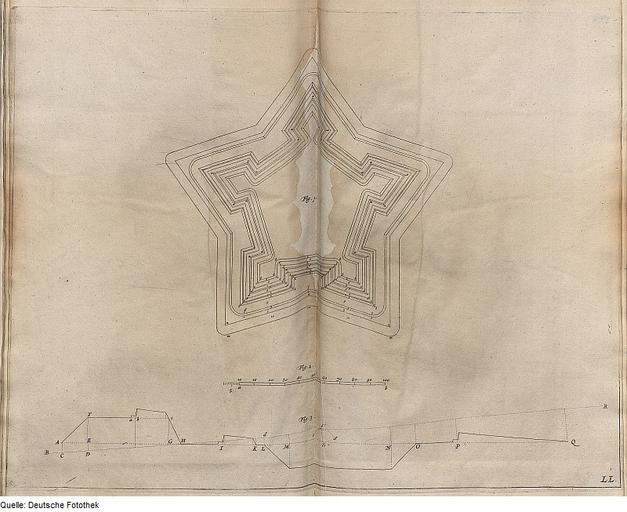 | Keywords: Fotothek df tg 0006875 Festungsbau ^ Ravelin ^ Wall ^ Glacis ^ Graben ^ Bankett ^ Brustwehr.jpg Scan Deutsche Fotothek df_tg_0006875 color 2008 MIK-Center Berlin GmbH 88966875 Abbildung LL Amsterdam Grundriss und Schnitt einer fünfeckigen Festungsanlage Papier Kupferstich 31 2 x 40 cm Festungsbau Ravelin Wall Glacis Graben Bankett Brustwehr ppn277865190 1645 Druck Deutsche Fotothek gefördert von der Deutschen Forschungsgemeinschaft Projekt Technikgeschichte 16 /17 Jh Verwalter Dresden Sächsische Landesbibliothek - Staats- und Universitätsbibliothek Dresden 1 B 277 Herstellung Janssonius Verleger aus Cellarius Andreas Buch Architectura Militaris Oder Gründtliche Underweisung der heuttiges tages so wohl in Niederlandt als andern örttern gebräuchlichen Fortification oder Vestungsbau Abbildungen AA bis ZZ SLUB 1 B 277 Fotothek-License PD-old-100 Architectura Militaris Andreas Cellarius Old Manuscripts from the Deutsche Fotothek |