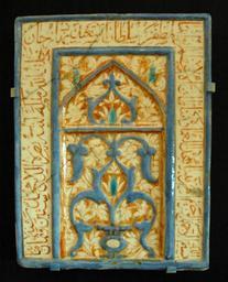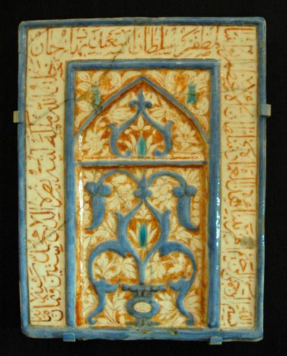 Keywords: Foundation plaque MET 30-85-26.jpg Foundation plaque bearing the signature of Nusrat al-Din Muhammad about a building erected by Abu Sa'id of the Timurid Dynasty Molded earthenware lustre and cobalt decoration 1455 Iran Metropolitan Museum of Art MET 30 85 26 Plaque de fondation portant la signature de Nusrat al-Din Muhammad La plaque décrit l'érection d'un monument non identifié par le Timouride Abu Sa'id Pâte siliceuse moulée décor de lustre et rehauts de cobalt 1455 Iran Metropolitan Museum of Art MET 30 85 26 own Jastrow 2006 Tiles in Iran Arabic calligraphy in applied art Lustreware Iranian sculptures in the Metropolitan Museum of Art 1455 Timurid art |