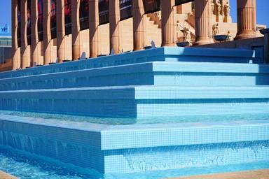 Keywords: fountain stairs gradually blue water palacio de congresos playa de las americas tenerife hard rock cafe columnar statues