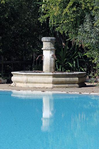 Keywords: fountain swimming pool water reflection landscape vegetation nature