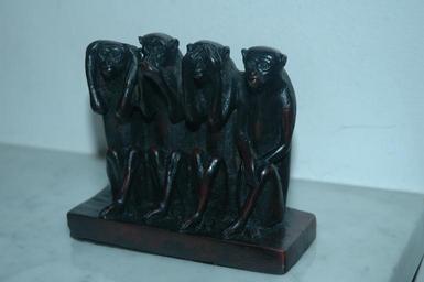 Keywords: Four monkeys relics.jpg A variant of 4 monkeys statue see no evil hear no evil speak no evil do no evil Own Uahlim Statues of primates Three monkeys