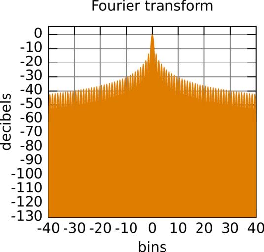 | Keywords: Fourier transform – Rectangular.svg  Fourier transform Rectangular window Trasformata di Fourier Finestra rettangolare own 2016-06-11 Bob K original version Olli Niemitalo BobQQ Luca Ghio cc-zero File Window function and frequency response - Rectangular svg Window function and its Fourier transform File Window function “ Rectangular svg Window function Octave script The script below generates these SVG images File Window function and frequency response - Bartlett-Hann svg File Window function and frequency response - Blackman svg File Window function and frequency response - Blackman-Harris svg File Window function and frequency response - Blackman-Nuttall svg File Window function and frequency response - Approximate confined Gaussian sigma t 0 1N svg File Window function and frequency response - Confined Gaussian sigma t 0 1N svg File Window function and frequency response - Cosine svg File Window function and frequency response - Dolph-Chebyshev alpha 5 svg File Window function and frequency response - DPSS alpha 2 svg File Window function and frequency response - DPSS alpha 3 svg File Window function and frequency response - Exponential 60dB decay svg File Window function and frequency response - Exponential half window decay svg File Window function and frequency response - Gaussian sigma 0 4 svg File Window function and frequency response - Hamming alpha 0 53836 svg File Window function and frequency response - Hann svg File Window function and frequency response - Hann-Poisson alpha 2 svg File Window function and frequency response - Kaiser alpha 2 svg File Window function and frequency response - Kaiser alpha 3 svg File Window function and frequency response - Lanczos svg File Window function and frequency response - Nuttall continuous first derivative svg File Window function and frequency response - Parzen svg File Window function and frequency response - Planck-Bessel epsilon 0 1 alpha 4 45 svg File Window function and frequency response - Planck-taper epsilon 0 1 svg File Window function and frequency response - Rectangular svg File Window function and frequency response - SRS flat top svg File Window function and frequency response - Triangular svg File Window function and frequency response - Tukey alpha 0 5 svg File Window function and frequency response - Welch svg The script is not MATLAB-compatible <source lang matlab > pkg load signal graphics_toolkit gnuplot set 0 defaultaxesfontname sans-serif set 0 defaultaxesfontsize 12 set 0 defaultaxeslinewidth 1 function plotWindow w wname wfilename wspecifier wfilespecifier M 32; Fourier transform size as multiple of window length Q 512; Number of samples in time domain plot P 40; Maximum bin index drawn dr 130; Maximum attenuation dB drawn in frequency domain plot N length w ; B N sum w 2 /sum w 2 noise bandwidth bins k 0 1/Q 1; w2 interp1 0 1/ N-1 1 w k ; if M/N < Q Q M/N; endif figure 'position' 1 1 1200 600 subplot 1 2 1 area k w2 'FaceColor' 0 0 4 0 6 'edgecolor' 0 0 0 'linewidth' 1 if min w > -0 01 ylim 0 1 05 set gca 'YTick' 0 0 1 1 else ylim -1 5 set gca 'YTick' -1 1 5 endif ylabel 'amplitude' set gca 'XTick' 0 1/8 1 set gca 'XTickLabel' ' 0'; ' '; ' '; ' '; ' '; ' '; ' '; ' '; 'N-1' grid 'on' set gca 'gridlinestyle' '-' xlabel 'samples' if strcmp wspecifier title cstrcat wname ' window' 'interpreter' 'none' else title cstrcat wname ' window ' wspecifier ' ' 'interpreter' 'none' endif set gca 'Position' 0 094 0 17 0 38 0 71 H abs fft w zeros 1 M-1 N ; H fftshift H ; H H/max H ; H 20 log10 H ; H max -dr H ; k 1 M N-1-M N/2 /M; k2 -P 1/M P; H2 interp1 k H k2 ; subplot 1 2 2 set gca 'FontSize' 28 h stem k2 H2 '-' ; set h 'BaseValue' -dr xlim -P P ylim -dr 6 set gca 'YTick' 0 -10 -dr set findobj 'Type' 'line' 'Marker' 'none' 'Color' 0 8710 0 49 0 grid 'on' set findobj 'Type' 'gridline' 'Color' 871 49 0 set gca 'gridlinestyle' '-' ylabel 'decibels' xlabel 'bins' title 'Fourier transform' set gca 'Position' 0 595 0 17 0 385 0 71 if strcmp wfilename wfilename wname; endif if strcmp wfilespecifier wfilespecifier wspecifier; endif if strcmp wfilespecifier savetoname cstrcat 'Window function and frequency response - ' wfilename ' svg' ; else savetoname cstrcat 'Window function and frequency response - ' wfilename ' ' wfilespecifier ' svg' ; endif print savetoname '-dsvg' '-S1200 600' close endfunction N 2 17; Window length B is equal for Triangular and Bartlett from 2 17 k 0 N-1; s 0 1 N; w exp - k - N - 1 /2 2 / 4 s 2 - exp - -1/2 - N - 1 /2 2 / 4 s 2 exp - k+N - N - 1 /2 2 / 4 s 2 + exp - k-N - N - 1 /2 2 / 4 s 2 / exp - -1/2+N - N - 1 /2 2 / 4 s 2 + exp - -1/2 - N - N - 1 /2 2 / 4 s 2 ; plotWindow w App conf Gaussian Approximate confined Gaussian ' 0 1N' sigma_t 0 1N ; w parzenwin N '; plotWindow w Parzen ; w 1- k- N-1 /2 / N+1 /2 2; plotWindow w Welch ; alpha 5; Attenuation in 20 dB units w chebwin N alpha 20 '; plotWindow w Dolph Chebyshev Dolph-Chebyshev ' 5' alpha 5 w 0 35875 - 0 48829 cos 2 pi k/ N-1 + 0 14128 cos 4 pi k/ N-1 -0 01168 cos 6 pi k/ N-1 ; plotWindow w Blackman Harris Blackman-Harris w 0 62 -0 48 abs k/ N-1 -0 5 +0 38 cos 2 pi k/ N-1 -0 5 ; plotWindow w Bartlett Hann Bartlett-Hann w 0 53836 - 0 46164 cos 2 pi k/ N-1 ; plotWindow w Hamming Hamming ' 0 53836' alpha 0 53836 w 1 - 1 93 cos 2 pi k/ N-1 + 1 29 cos 4 pi k/ N-1 -0 388 cos 6 pi k/ N-1 +0 028 cos 8 pi k/ N-1 ; plotWindow w SRS flat top alpha 2; w 1/2 1 - cos 2 pi k/ N-1 exp alpha abs N-2 k-1 / 1-N ; plotWindow w Hann Poisson Hann-Poisson ' 2' alpha 2 w 0 42 - 0 5 cos 2 pi k/ N-1 + 0 08 cos 4 pi k/ N-1 ; plotWindow w Blackman w 0 355768 - 0 487396 cos 2 pi k/ N-1 + 0 144232 cos 4 pi k/ N-1 -0 012604 cos 6 pi k/ N-1 ; plotWindow w Nuttall Nuttall continuous first derivative w ones 1 N ; plotWindow w Rectangular w N/2 - abs k- N-1 /2 / N/2 ; plotWindow w Triangular w 0 5 - 0 5 cos 2 pi k/ N-1 ; plotWindow w Hann alpha 0 5; w ones 1 N ; n - N-1 /2 -alpha N/2; L length n ; w 1 L 0 5 1+cos pi abs n -alpha N/2 / 1-alpha N/2 ; w N -1 N-L+1 w 1 L