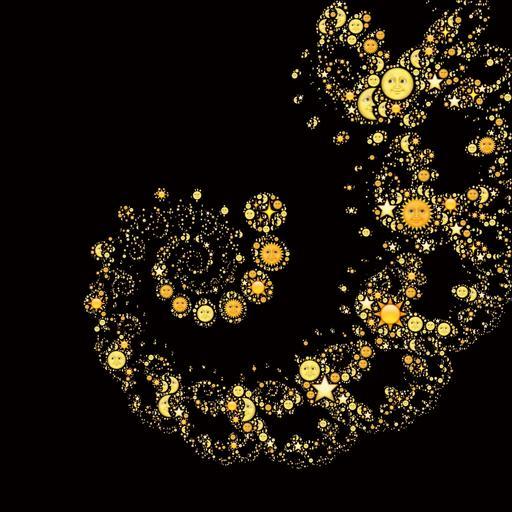Keywords: fractal emoji spiral universe nature yellow black background design sun moon stars celestial