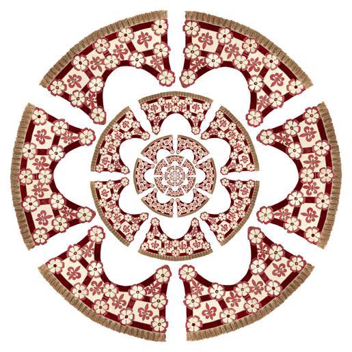 | Keywords: Framdel till tornerschabrak i Maria Eleonoras färger rött och vitt tillverkat för bröllopstorneringen 1620 - Livrustkammaren - 91558.tif  LSH artwork Baltzar Dinet Hovskräddare Anders pärlstickare pärlstickare sv På en botten av vit taft är applicerade ca 65 mm breda röda sammetsremsor tagna på diagonalen i ett rutsystem Där remsorna korsar varandra är applicerad en dubbel blomma av sidenatdlas den undre röd och ca 180 mm i diameter den övre vit och ca 140 mm På varje ruta en stiliserad lilja ca 90 mm hög och 160 mm bred En rosett av ibland guldgalon och ibland av silvergalon i blommornas mitt saknas på fyra blommor och två liljor Applikationera kantade med 3 mm breda silverflätor <br/>Längs nedre kanten en 100 mm bredfrans av silver och brunt silke i ca 25 mm breda partier <br/>Mellanfoder och foder av svart linne i tuskaft En ca 270 mm bred styvnad längs nedre kanten På fodrets övre vänstra hörn ett ca 500 mm långt beige bomullsband i övre högra hörnet en ca 250 mm lång läderrem <br/>1654 finns dessa tolv tornertäcken i Livrustkammaren 1655 även halskapporna och 1671 riddarskörten Ett täcke och riddarskörten kasserades 1823 1850 finns de ej upptagna 1867 upptages två med anteckning från Gripsholm ett är upptaget tillsammans med en sadel 869 övriga återlämnas från Husgerådskammarens förråd på Gripsholm enl skrivelse från chefen för K Hovmarskalksämbetet 7 2 1912 original caption Framdel till tornerschabrak i Maria Eleonoras färger rött och vitt tillverkat för bröllopstorneringen 1620 <br/> Nyckelord Rött Blomdekor Blommor Gustav II Adolf och Maria Eleonoras bröllop 1620 taffeta Färg vit röd material sidentaft size mm 450 mitt size mm 850 kant size mm 1260 upptill size mm 1480 nedtill LRK Maria Eleonora av Sverige drottning 1599- Königsberg Trofast - hov och tass i kunglig tjänst 2010-2011 Livrustkammaren Trogna vänner - Kungliga hästar och hundar 2011-2012 Museiverket/Finlands nationalmuseum Maria Eleonora - Hjärtats drottning 2013 Livrustkammaren Maria Eleonora - Hjärtats drottning arb namn 2014-2015 Nyköpingshus place of origin original filename lm_dig8721 42653 inventory number LRK 6114 91558 CC-BY-SA Erik Lernestål <gallery caption Different images of same object > File Framdel till tornerschabrak i Maria Eleonoras färger rött och vitt tillverkat för bröllopstorneringen 1620 - Livrustkammaren - 91559 tif File Framdel till tornerschabrak i Maria Eleonoras färger rött och vitt tillverkat för bröllopstorneringen 1620 - Livrustkammaren - 91557 tif </gallery> Decor Floral designs Red Wedding of Gustav II Adolf and Maria Eleanor of Sweden Horse equipment Erik Lernestål Media contributed by LSH dim-with multiple size templates Media contributed by LSH unmatched creator Media contributed by LSH 2014-11 |