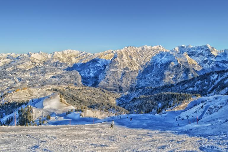 Keywords: france landscape scenic ski resort skier mountains valley slope recreation nature outside winter snow ice